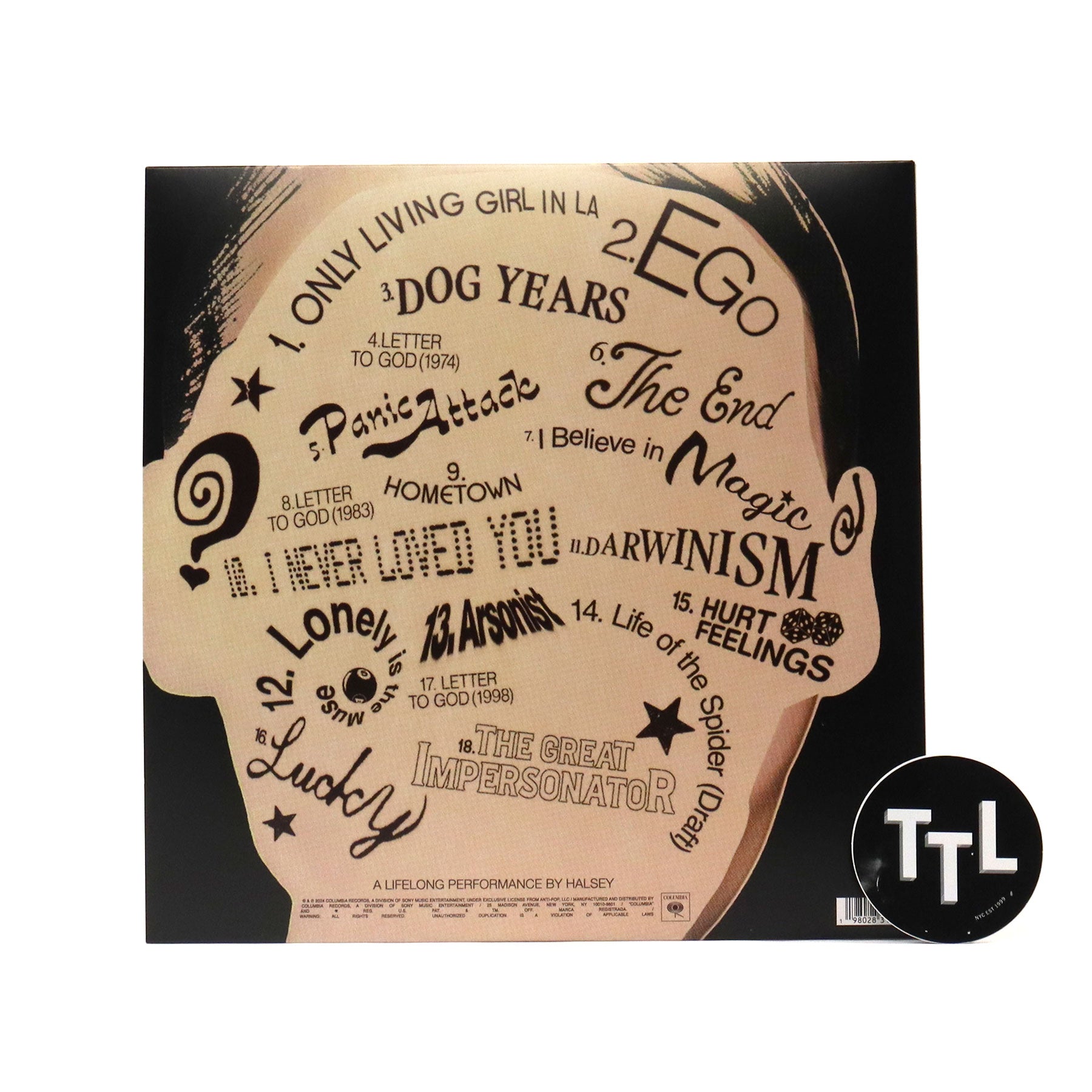 "Halsey’s fifth studio album The Great Impersonator is due out on Columbia Records on October 25th. In this confessional, concept album, Halsey explores who she would be as an artist and a person if she existed throughout different decades. Black Double LP, Gatefold, with double-sided insert." - Columbia