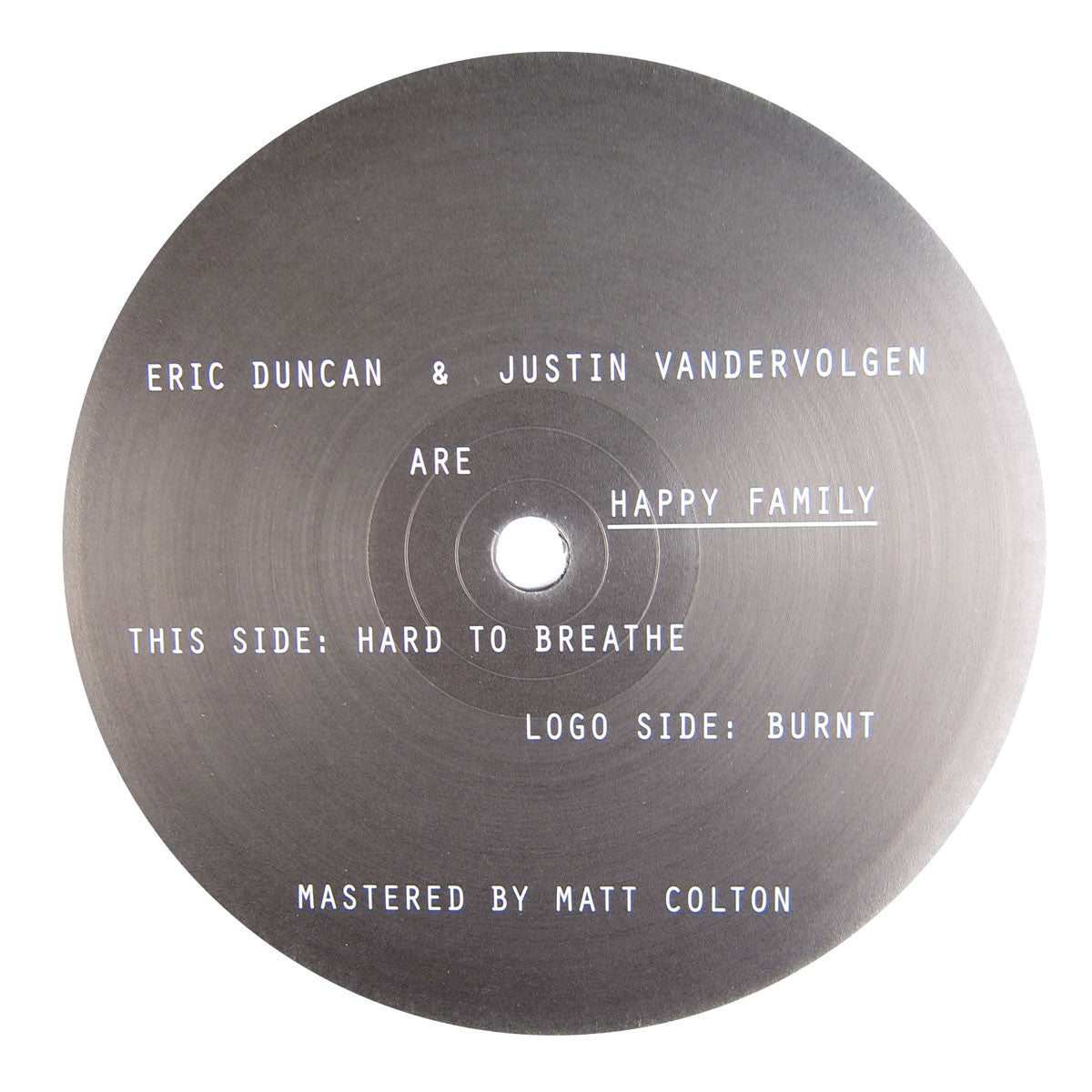Acid life. The good doctor Eric Duncan (aka Dr. Dunks) teams up with fellow NYC DJ/producer Justin Vandervolgen of TBD/Golf Channel fame for a pair of acid house workouts under the Happy Family alias. You may know these two for their top notch disco work, but this 12" proves they also know their way around some hardware, especially a 303. Check the blistering sound of "Burnt" that effectively freaks some bubbling mid-range acid for peak-time blow up, while "Hard To Breathe" eases up with a bit of melodic italo house vibes. Seems these two can do anything they put their mind to!