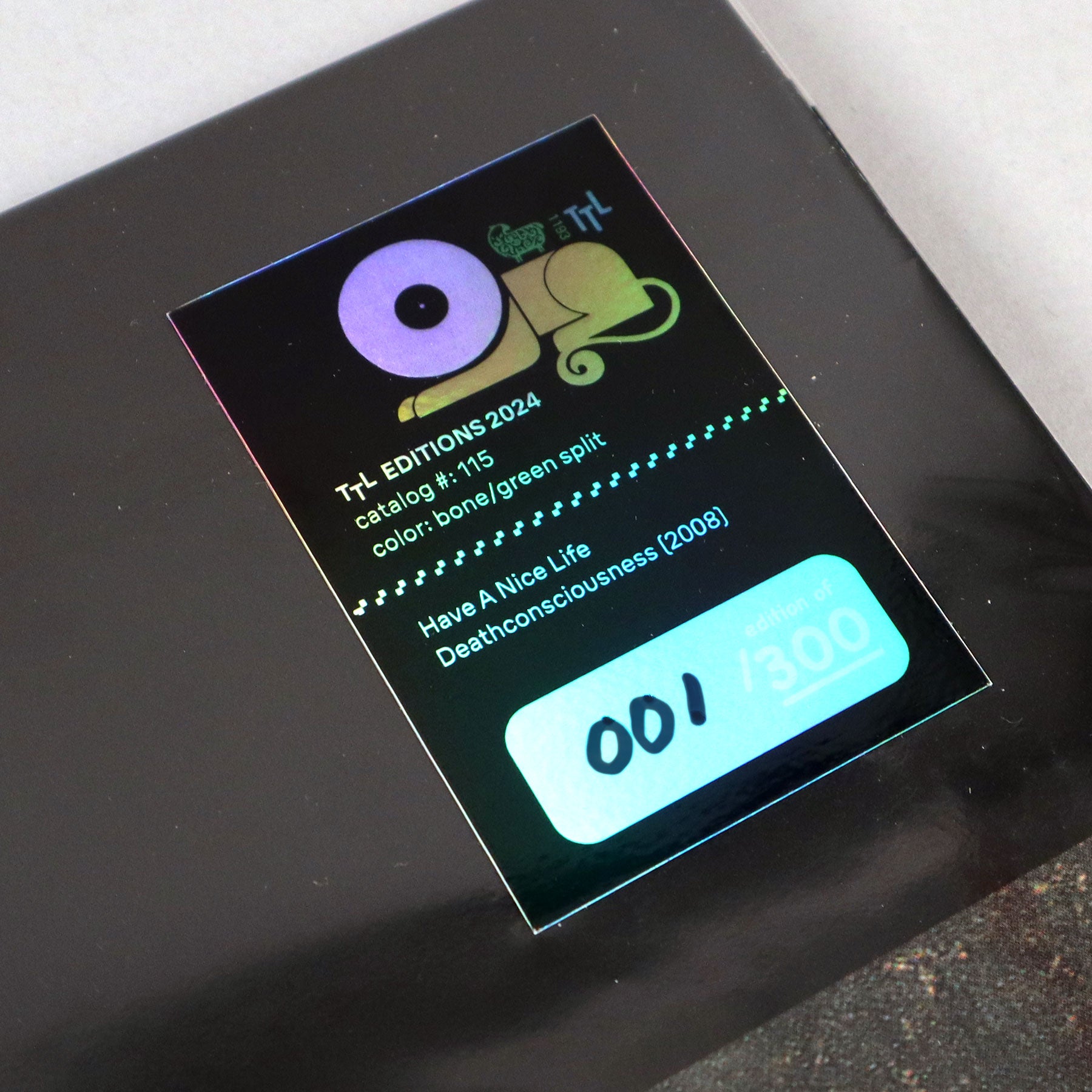 "In 2008, Have a Nice Life released their now cult classic Deathconsciousness album to a whimper and critical non-interest. Six years after it's release the band followed up with 2014's stunner The Unnatural World, and by then Deathconsciousness had become a force of influence and fanatic obsession. Seamlessly blending shoegaze, post punk, new wave, industrial and noise with unparalleled depth and weight, the album was originally released by Enemies List Home Recordings founded by HANL members Dan Barrett and Tim Macuga. The 75-page booklet accompanying the deluxe format of Deathconsciousness details the dark and forgotten history of the Antiochean cult. Blurring the lines between novella, liner notes, and academic text, the zine itself presents an engrossing narrative. The corresponding album is rhythmic, primal and expansive, and is a gloomy-post-punk masterpiece-a mediation on death, loss and existence. It feels more fresh and engaging with every listen and has held up as a remarkable piece of art. Fans of Have a Nice Life exhibit both cultic thought and action for good reason-it is perhaps a fanbase as dark and mysterious as the Antiochean's, which the album itself revolves around." - Flenser Records