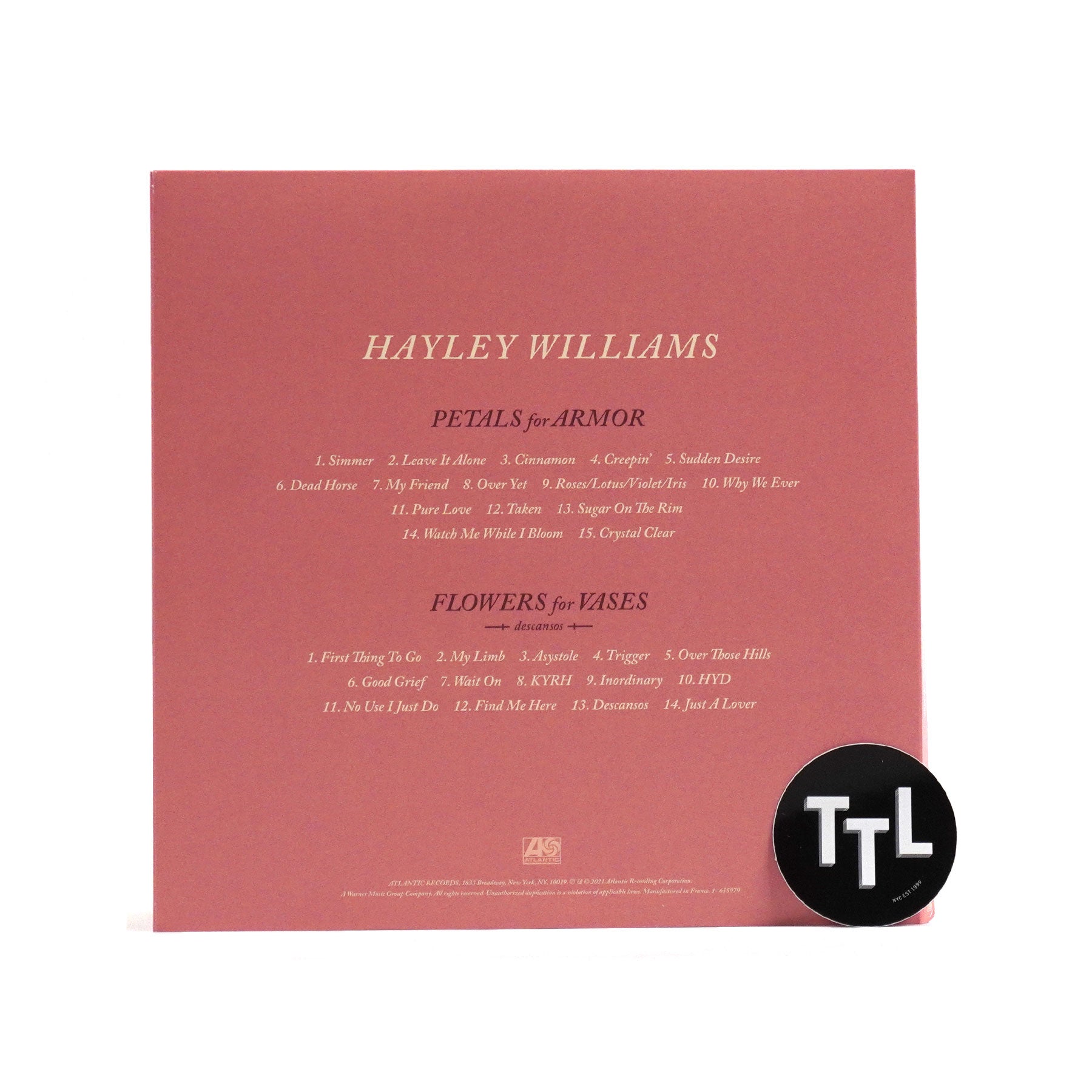 "Hayley Williams' 'FLOWERS for VASES + Petals for Armor Deluxe' is a 3LP which includes a 20 page booklet filled with never before seen photos and diary entries from Hayley." - Atlantic