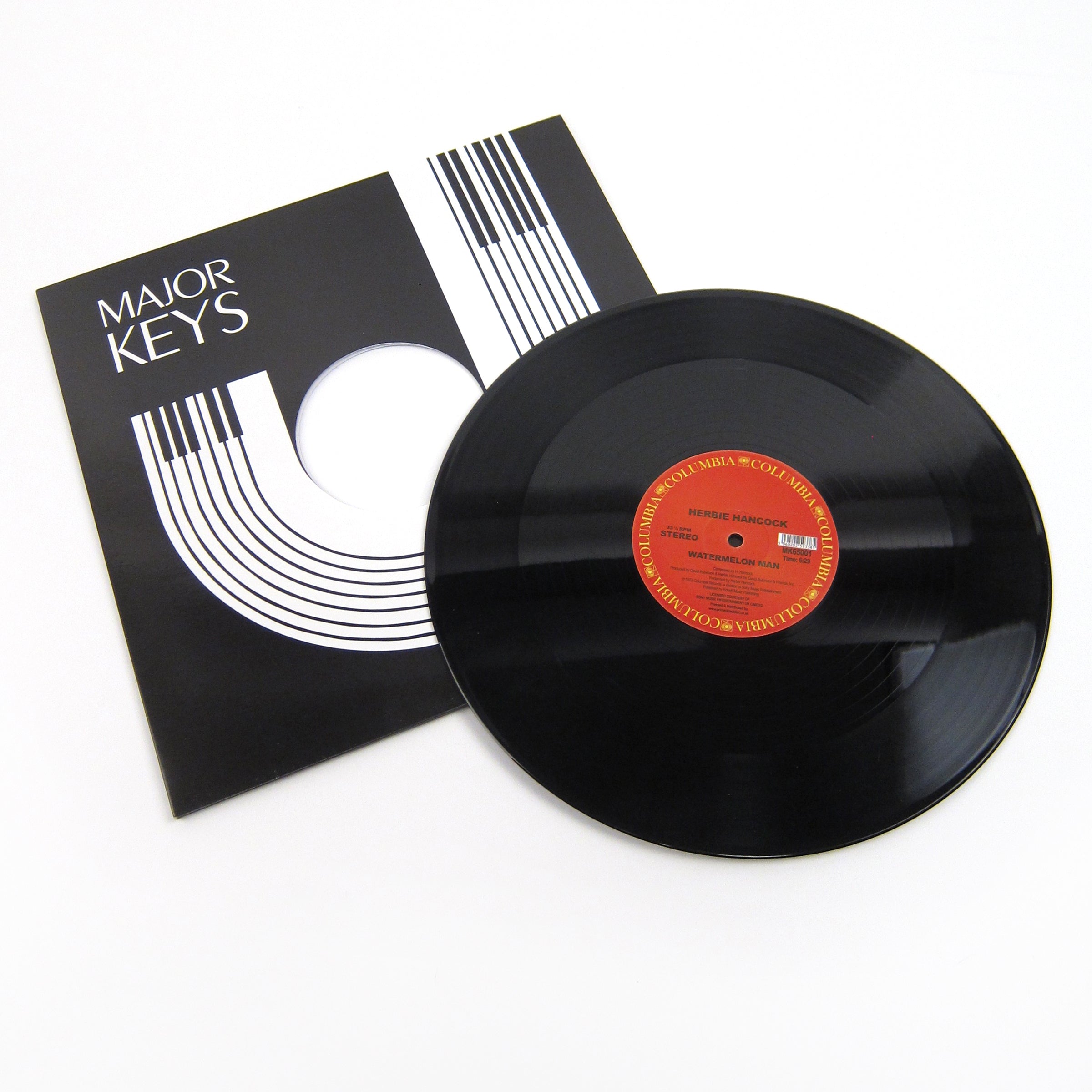 Two essentials from Herbie Hancock's Head Hunters LP, on 12" for the first time! "Watermelon Man" is probably the most famous cut on Head Hunters, with the long looped intro and funky breakdown (even made it so far as skate video fame). "Chameleon" is equally head-nodding and carries out some excellent solo goings on with Herbie getting loose all over the synthesizers and arps and rhodes and stuff. I can't imagine what all those post-LSD heads were thinking listening to this shit in 1973. Like... wow man. Both cuts get room to spread out here, with "Chameleon" encompassing the entire A side in all its 16 minute glory, and the comparably brief "Watermelon Man" taking up just 6.5 min on the flip. This is the first time these tracks have been available on the 12" format, and it's not even a bootleg! Classic Columbia center labels and everything; what a time to be alive. Any self-respecting player of jazz and/or funk records needs this in their crate, end of discussion. Recommended.