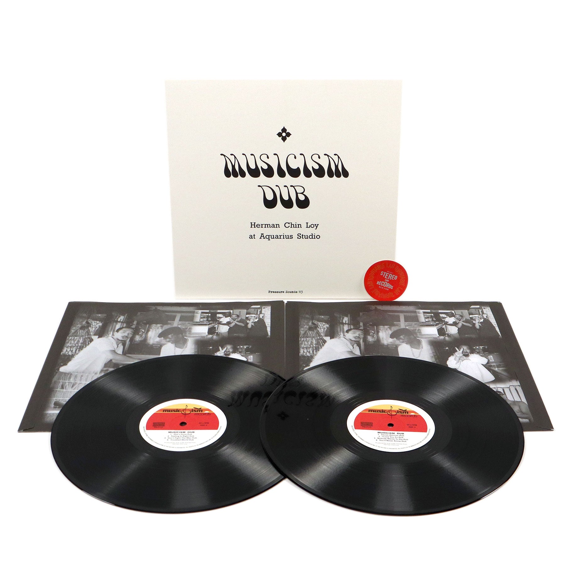 "Herman Chin Loy wants the world to know the truth about his musical vision, realized in a series of fantastic records released throughout the ‘70s and ‘80s. Kingston in the early 70s was on fire with new music, and Herman put on the afterburners to release Aquarius Dub, probably the world’s first dub LP. His Aquarius and Scorpio labels had a fine run of hit tunes, known for their unusual arrangements and imaginative productions. Many cuts featured Herman himself talking over them. Others were moody instrumentals, for which Herman invented the name Augustus Pablo. Herman then opened the Aquarius Records shop on Constant Spring Road, with a busy bus stop right outside providing a captive audience. Big speakers were placed out in the street, and Herman acted as a vibes man and entertainer, running in and out of the shop and dragging customers inside. As the crowds grew bigger, Aquarius became extremely influential, and the energetic Herman could make or break the latest tunes. This reissue is of two extremely rare LPs that came out on Herman's Musicism label in 1983, a couple of years after dub had declined in popularity as an album form in Jamaica. They were released in the generic 12-inch sleeves of the American label TK Disco, which had recently ceased trading, picked up on Herman’s travels to Miami. The labels were either blank or stamped with the wrong song titles from a similarly obscure vocal compilation. A handful of copies were exported to London and the U.S., and the remainder were sold exclusively by the Aquarius shop. Nowadays there are no record shops on Constant Spring Road. The block which housed Aquarius is now home to Usain Bolt’s Tracks And Records restaurant. Herman joined the steady exodus of Jamaicans to Miami, and today finds him using his verbal dexterity and irrepressible energy to sell Sorrel drinks filled with medicinal herbs, ginger and turmeric. But his music is still out there, circling the globe through speakers and headphones..." - Pressure Sounds