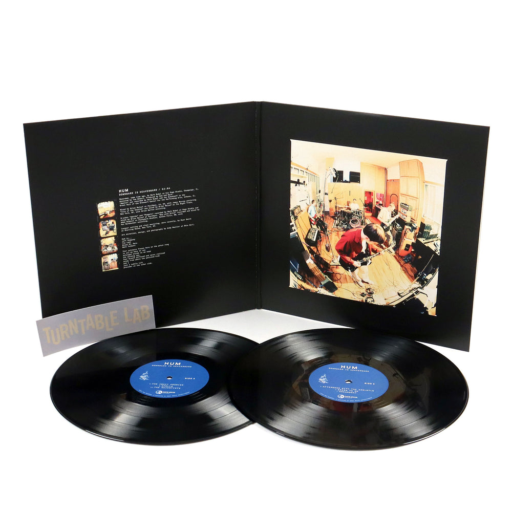 "Champaign, Illinois band Hum is re-issuing its four-album catalog on vinyl. The band members oversaw every step of the re-mastering, lacquer cutting, and manufacturing stages while working with original designer Andy Mueller/Ohio Girl in updating the artwork. Recorded by Mark Rubel at Pogo Studio, Champaign, IL. Mixed by Brian Malouf at Pacifique, LA. Licensed from Sony Music and re-mastered by Ryan Smith at Sterling Sound, New York. Offered in black double LP at 33 1/3 rpm, includes B-sides." - Earth Analog Records