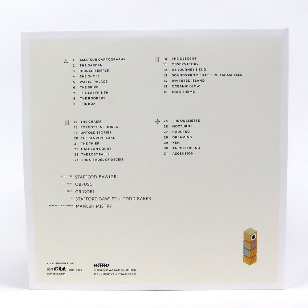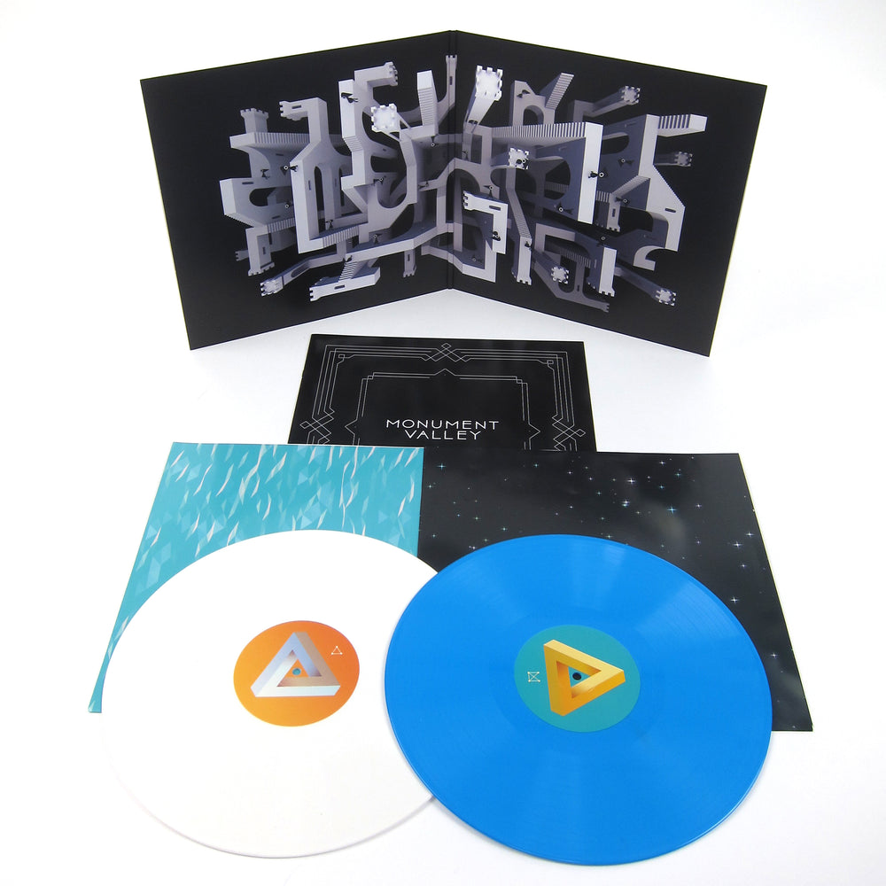 How Far Have You Wandered Silent Princess? The original soundtrack to Ustwo's hit video game Monument Valley gets a deluxe vinyl pressing courtesy of Iam8Bit! The indie puzzle game features an immersive world of optical illusions and impossible objects, designed to be so beautiful that any frame of gameplay could be worthy of display. The music is equally breath taking, and is mainly composed by Stafford Bawler (with contributions by Obfusc and Grigori) who crafts mesmerizing drones and ambient soundscapes that easily takes the player's mind adrift. This 2016 pressing features the original games sound track and the expansions Forgotten Shores and Ida's Dream on 180 gram, white and blue opaque colored vinyl, complete with 6 page booklet, gatefold sleeve, and digital download code.