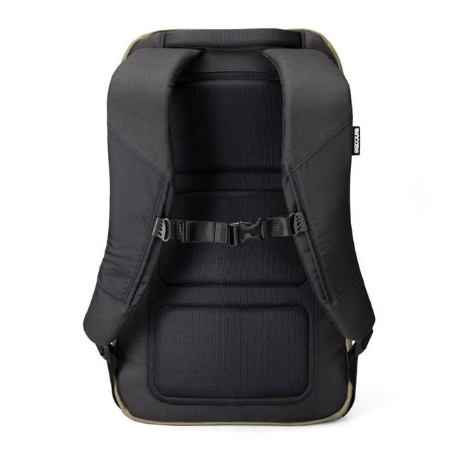 The Staple Backpack from Incase features a simple design with modern shape and slimmer silhouette. The bag can hold everything you need for the day, including up to 15" laptop and keeps your electronics organized. Also features faux leather panel for extra style points.