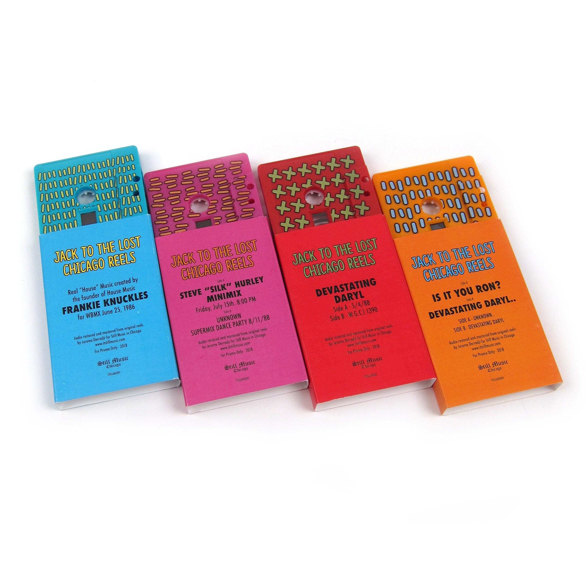 Anyone who grew up listening to black radio in New Jersey, New York or Chicago will light up at the mention of radio mix shows (an endangered artform here in NYC but thanks to WBLS, not entirely extinct). The same DJs that were rocking clubs on the weekends were throwing down those unreleased acetates and extended b-side dub versions of popular tracks on weekdays during rush hour. And in Chicago in the late 80s, music was changing; the sounds pumping out of the famed Warehouse and Music Box club were slowly taking over black radio, too. Jack To The Lost Chicago Reels is a rare glimpse into the inimitable vibe of those old school Chicago mix shows, restoring lost recordings by some of the biggest names in Chicago House music that were broadcasted on WBMX and WGCI once and then thought to be lost forever. The folks at Chicago’s Still Music hit the jackpot when someone dropped off a truckload of old reel to reel tapes at their doorstep, containing rough recordings of those mixes laid down by some of the scene’s most revered figures. These four cassettes include audio carefully transferred from those original tapes, with mixes by Chicago legends Frankie Knuckles, Steve ‘Silk’ Hurley, Devastating Darryl, and a fourth mix credited to an unknown DJ (but rumored to be the one and only Ron Hardy); enough Chicago mix show madness here to keep you jackin’ for a lifetime. There’s something about that warm analog compression that colors the sound of the radio; it’s an entirely different listening experience than hearing the same records on a nightclub soundsystem (take that, commit it to reel to reel tape, leave it to rot in some program director’s garage for 30 years and what you get will blow any “lo-fi house” tune out of the water). It’s going to take us months to work through these mixes and properly nerd out (tracklistings, alternate mixes/versions, etc.), but expect plenty of unheard tracks, demo versions and live overdubs of house classics. These four laser-imprinted cassettes come as a pack and are individually housed in full-color O-cards with all known information included on the back. Recommended.