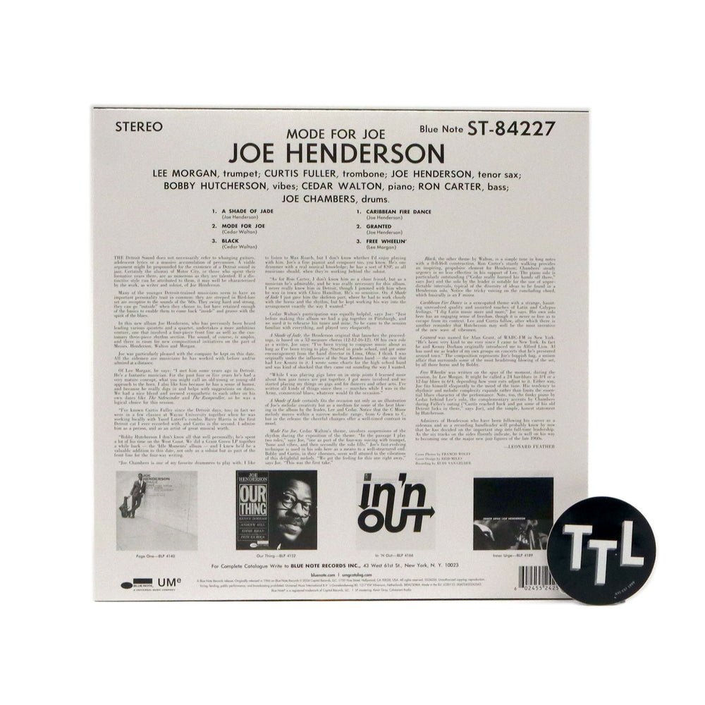 "Tenor saxophonist Joe Henderson capped off his run of five sublime 1960s Blue Note leader dates with his 1966 classic Mode for Joe, an album bursting with vigor and vitality that found Henderson expanding his palette with a septet of colorful figures including Lee Morgan on trumpet, Curtis Fuller on trombone, Bobby Hutcherson on vibraphone, Cedar Walton on piano, Ron Carter on bass, and Joe Chambers on drums. The band delivers six powerful performances, playing with white-hot intensity on Henderson’s originals 'A Shade of Jade,' Caribbean Fire Dance,' and 'Granted,' as well as Morgan’s swinger 'Free Wheelin’.' But it’s the remarkable title track by Walton that emerges as the standout of the set, a modal masterpiece where the leader summons one of his most transcendent and visceral solo statements. This Blue Note Classic Vinyl Edition is stereo, all-analog, mastered by Kevin Gray from the original master tapes, and pressed on 180g vinyl at Optimal." - Blue Note Records