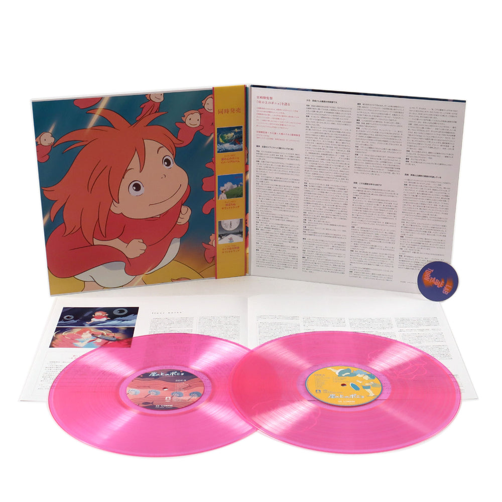 "Studio Ghibli’s Ponyo on the Cliff by the Sea gets its first vinyl release, as part of the best-selling vinyl series featuring legendary composer Joe Hisaishi. Featuring an insanely adorable and catchy theme song, the full soundtrack to Studio Ghibli’s 2008 anime film Ponyo On The Cliff By The Sea composed by Joe Hisaishi is released on double vinyl, with laser etchings on the fourth side. As well as performances by the New Japan Philharmonic and the Kuriyukai Chorus, the eponymous song performed by Nozomi Ohashi is included. Perfect for audiences of all ages, Ponyo centers on the friendship between five-year-old Sosuke and a magical goldfish named Ponyo, the young daughter of a sorcerer father and a sea-goddess mother. After a chance encounter, Ponyo yearns to become a human so she can be with Sosuke. As to be expected with Miyazaki, the film is awash in pure unbridled imagination and visual wonder – but it is the tender love, humor, and devotion exhibited by Ponyo and Sosuke that form the emotional heart of the film. Presented on double vinyl, with laser etchings on Side D." - Studio Ghibli Records