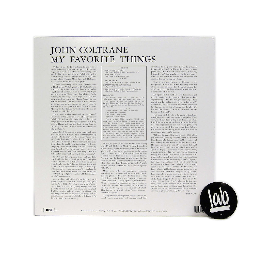 "Instantly recognized and forever celebrated, My Favorite Things is a landmark recording in every possible sense. The 1960 album is the first that introduced John Coltrane's legendary quartet with pianist McCoy Tyner, bassist Steve Davis, and drummer Elvin Jones. It is also the first on which he played soprano saxophone. It absolutely reimagined how a popular song could be interpreted and spun into a completely new, absorbingly beautiful piece of art." - Atlantic