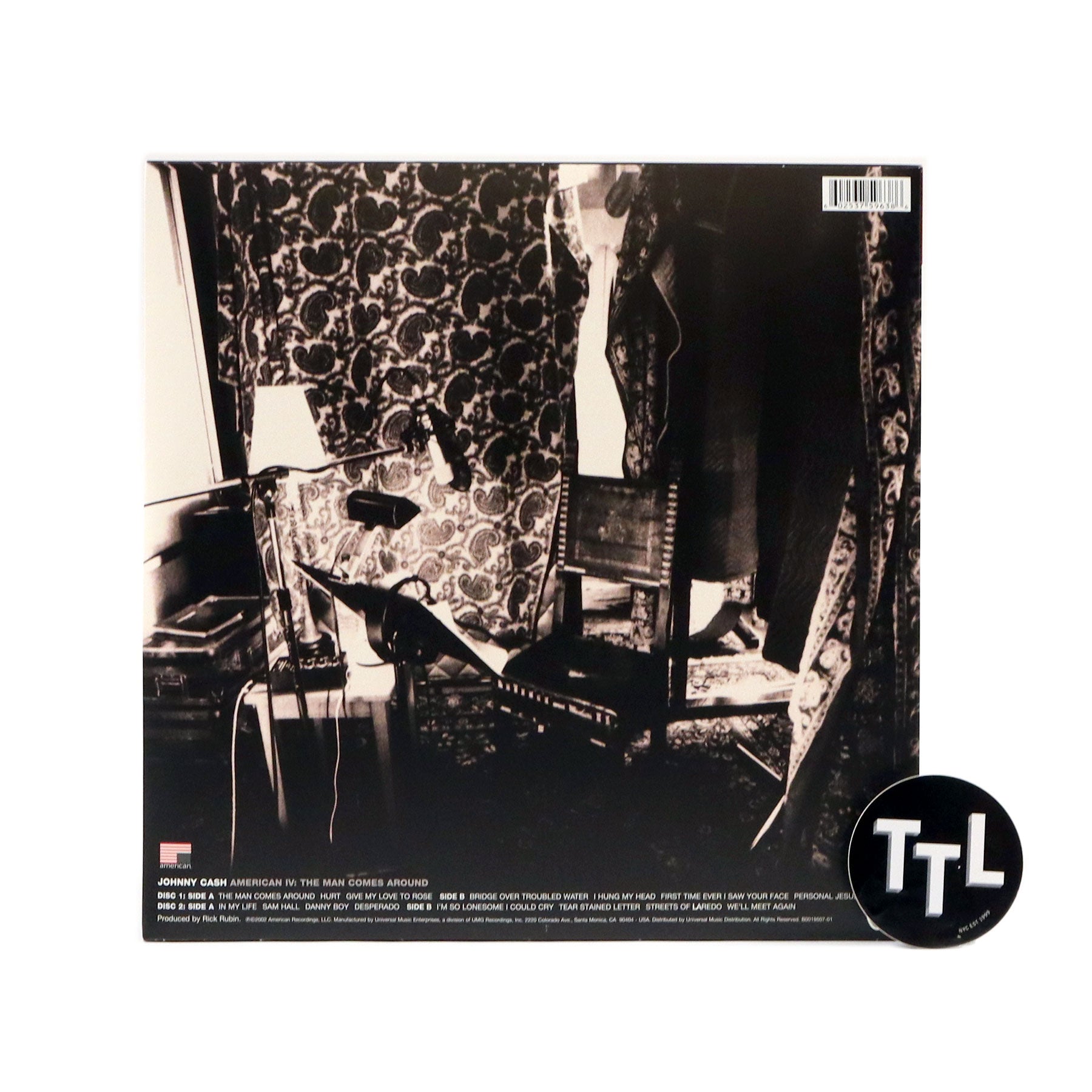 Final studio album from the Man in Black. American IV: The Man Comes Around was originally recorded in 2002 and was Johnny Cash's fourth project with producer Rick Rubin. The legendary country singer's baritone voice is set over minimal production in a similar manner to his previous releases for Rubin's American Recordings. There are some unexpected, brilliant duets, most notably with Fiona Apple on a cover of Simon and Garfunkel's "Bridge Over Troubled Water." The title track is one of the best songs that Cash wrote in the twilight of his career. His covers of Nine Inch Nails' "Hurt" and Depeche Mode's "Personal Jesus" are equally powerful. Fifteen tracks in all. Released by American Recordings on 180 gram double vinyl.