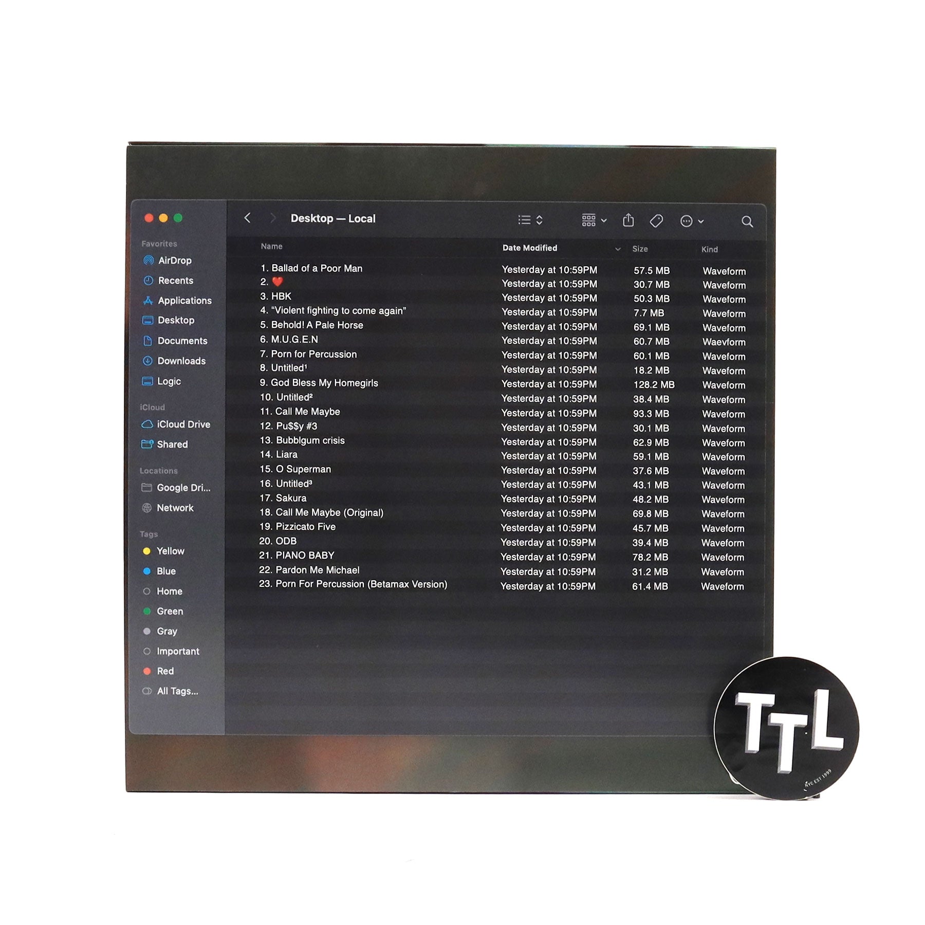 please note: last five tracks listed on the jacket are not actually included on the vinyl. D-side has custom JPEG etching