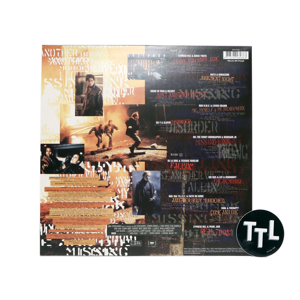 "The 1993 film Judgment Night was basically suburbia's paranoid view of inner-city life, where the slightest misstep (such as trying to take a shortcut to a boxing match) has fateful, if not fatal, consequences. And what better music to accompany this middle-class nightmare than a hybrid of the music suburbanites seemed most afraid of; Rap and Rock. It turned out to be quite a fruitful collaboration; while the film bombed, the soundtrack went gold. Judgment Night spawned four singles: Biohazard & Onyx's 'Judgment Night', Helmet & House Of Pain's 'Just Another Victim', Teenage Fanclub & De La Soul's 'Fallin' and Faith No More & Boo-Yaa T.R.I.B.E.'s 'Another Body Murdered'. It also features a highly sought after collaboration between Pearl Jam & Cypress Hill. Ice-T and Slayer manage to thrash it out on an unsurpassed level, while Sonic Youth & Cypress Hill have that slightly paranoid sound you get from loving Mary Jane a little too much." - Music On Vinyl