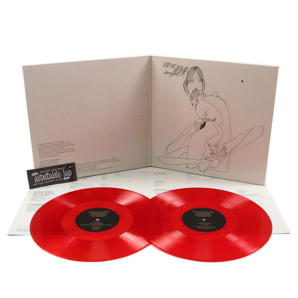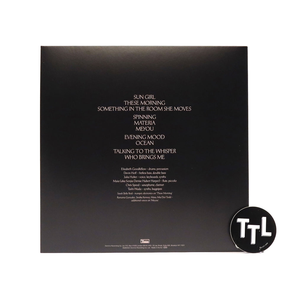 "'My heart is loud,' Julia Holter sings on her sixth album Something in the Room She Moves, following an inner pulse. The Los Angeles songwriter’s past work has often explored memory and dreamlike future, but her latest album resides more in presence: 'There’s a corporeal focus, inspired by the complexity and transformability of our bodies,' Holter says. Her production choices and arrangements form a continuum of fretless electric bass pitches in counterpoint with gliding vocal melodies, while glissing Yamaha CS-60 lines entwine warm winds and reeds. 'I was trying to create a world that’s fluid-sounding, waterlike, evoking the body’s internal sound world,' Holter says of her flowing harmonic universe. 'What is delicious and what is omniscient?' she sings on 'Spinning', the album’s incantatory centerpiece. 'What is the circular magic I’m visiting?' Or as Holter put it: 'It’s about being in the passionate state of making something: being in that moment, and what is that moment?' She found it anew on Something in the Room She Moves, singing in somatic frequencies." - Domino