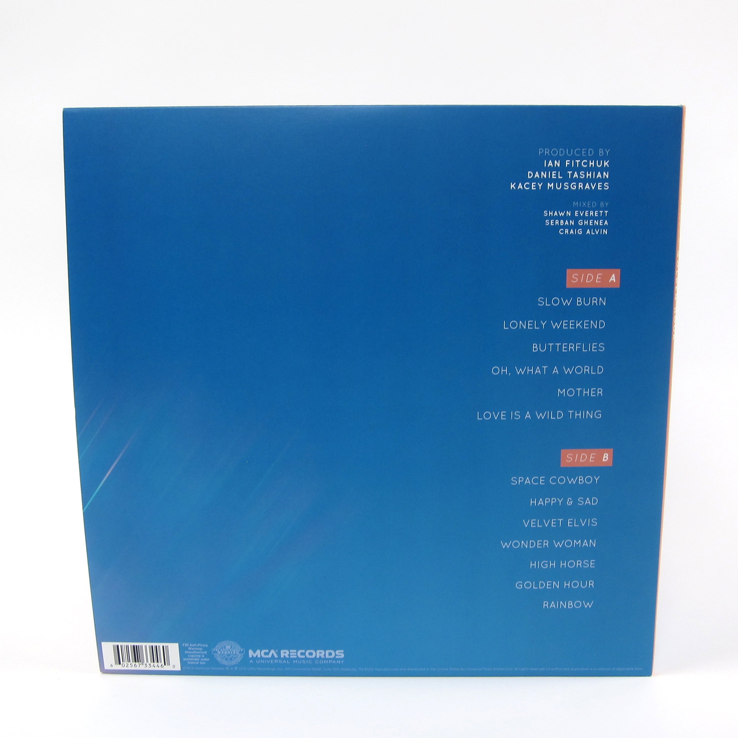 7th studio album / 4th proper full-length from East-Texas country pop starlet Kacey Musgraves. Golden Hour is a departure from the solidly country sound of her previous efforts; it plays more like the poppier cousin of country-tinged indie projects by Sufjan Stevens, Spoon and Beck. One of the songs is even inspired by an acid trip! She’s young enough (29, which is like 19 in Nashville) and bold enough to pour the bag of country tropes out onto the living room floor and pick the ones she wants, and she does this to great effect on “High Horse,” which is an infectious upbeat summer pop song that doesn’t sound anything like contemporary country music, but mirrors the pitch perfect vocal delivery and flawless harmonies often found in the genre’s best works. Clear vinyl pressing housed in gatefold jacket with code for digital download.