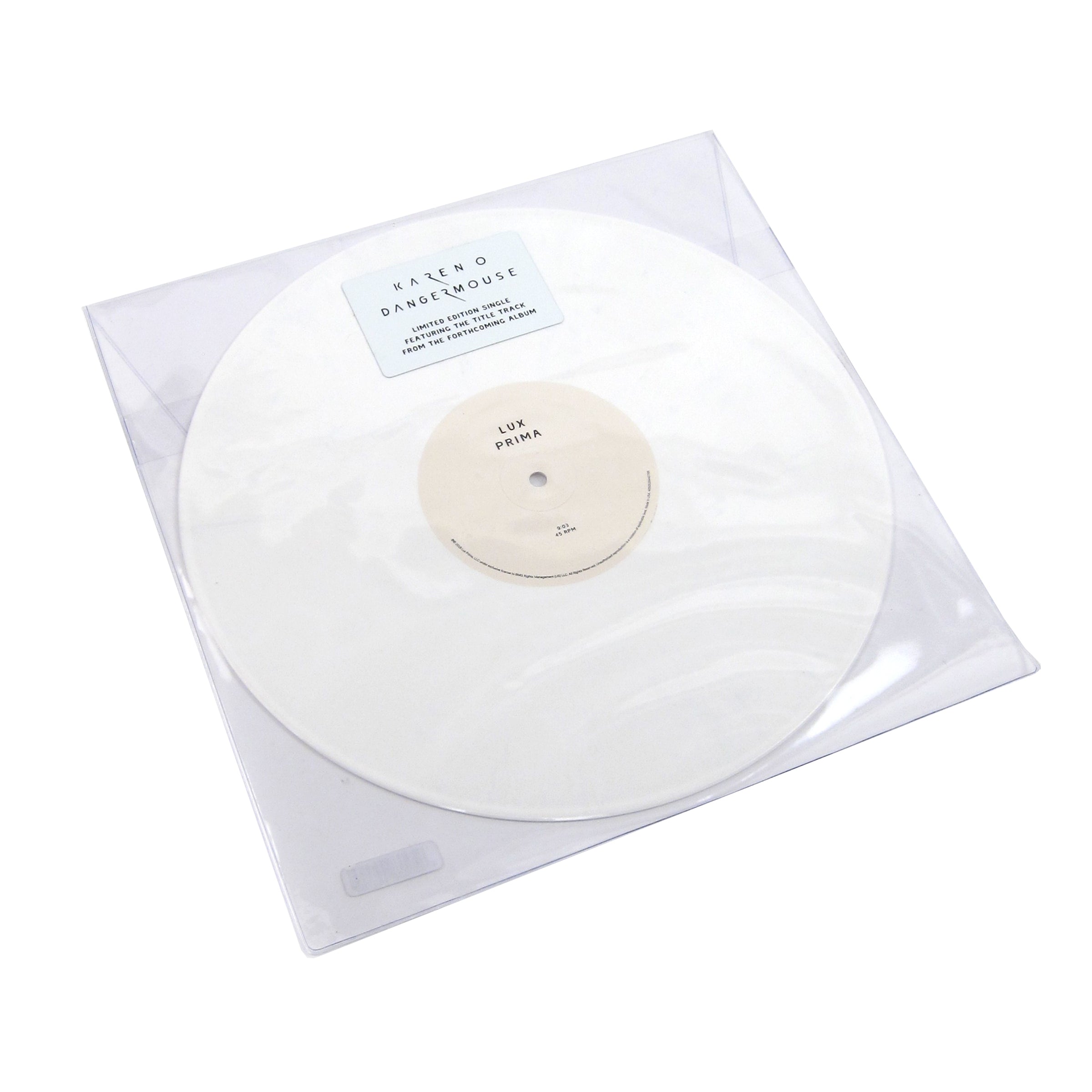 Fresh new track from power duo. Hyping for the release of their upcoming album, Yeah Yeah Yeahs lead singer Karen O pairs up with Danger Mouse to go far out. Karen O puts it best, "when you create from a blurry place you can go places further than you've ever been." The 9+ minute track drifts along and never strays too far, swaying from ambient drones to a bumping funk beat. Lux Prima is a trip-hop groover, with killer orchestral arrangements to pair with the bangin' drums. This Limited Edition pressing is a single-sided slab of white vinyl, with an etching on the flip, released by BMG.