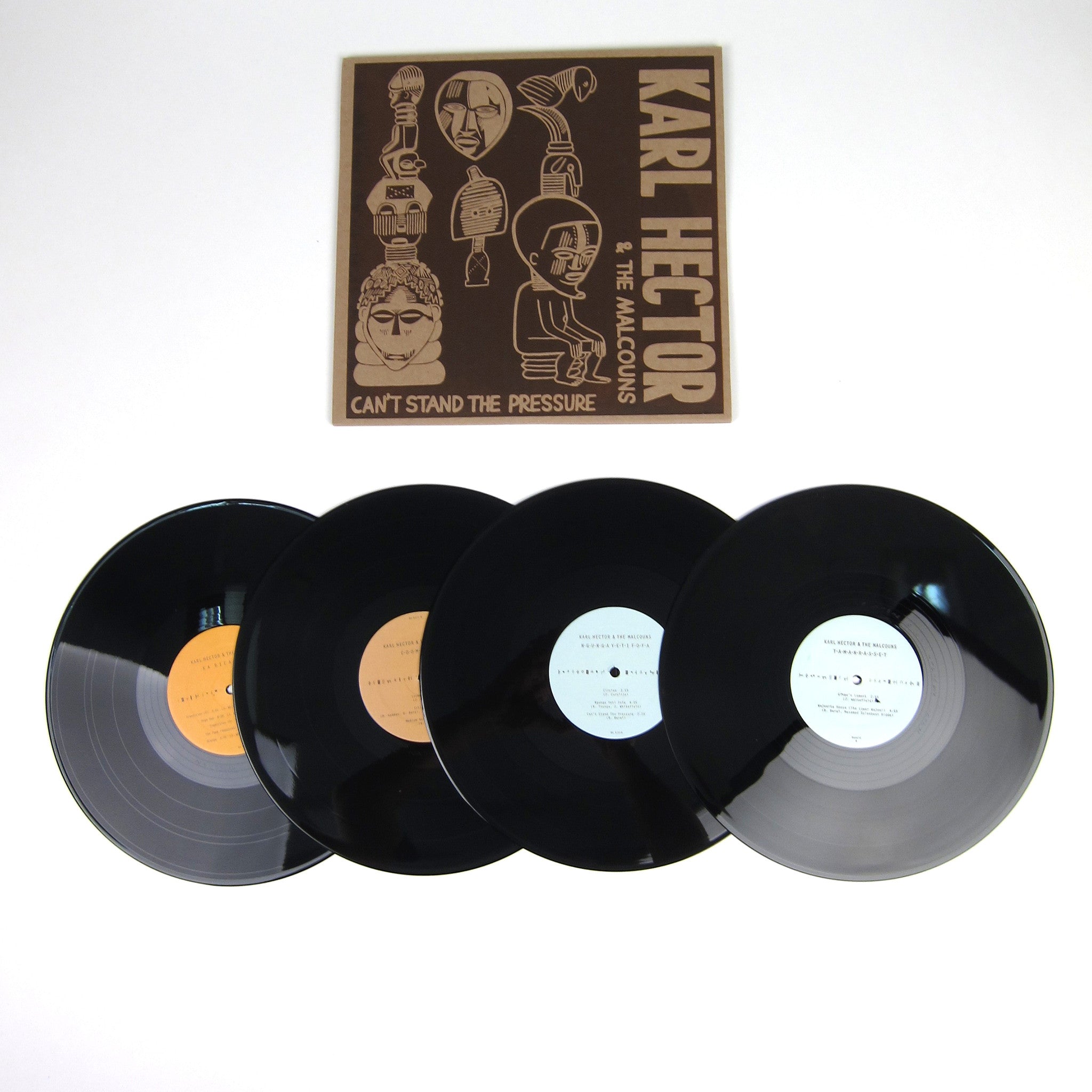 Four EP compilation from Afrobeat tinged funksters Karl Hector & The Malcouns. Can't Stand The Pressure collects the four EPs the band has released over the past decade. The Poets of Rhythm and the Whitefield Brothers offshoot turns in a potent strain of afro-fusion that deftly mixes music styles from Eastern and Northern Africa alongside Western psychedelia, jazz and funk. This is some real deal goodness that puts Krautrock, Afrobeat, pan cultural psychedelia and deep funk in to the same pot and comes out with the best gumbo you've ever heard. Twenty-seven tracks in all. Released by Now-Again Records on four LPs housed in a limited edition hand silk-screened chipboard sleeve with art work by Jason Jagel.
