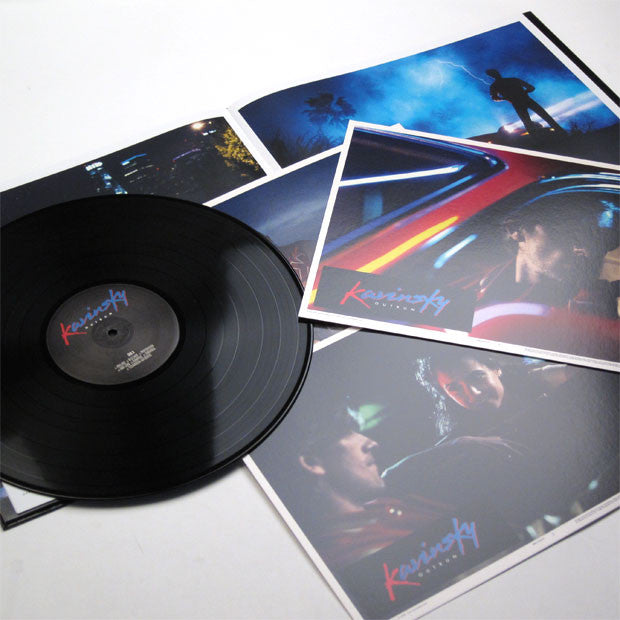Super deluxe hardbound book version of Kavinsky's phenomenal debut full length! This limited version of Outrun comes housed in a stunning hardbound vinyl book with glossy cover, printed cardboard inner sleeves, 16 page full color booklet, and 4 movie style lobby cards depicting Kavinsky and his killer ride. It's the most impressive version of the album you can get, and it's limited to 4500 pieces so be quick! Here's what we said about it when the regular version dropped earlier this year... Kavinsky has spent his career shrouded in mystery. He came to our attention in 2006 as a zombie who had died after crashing his Testarossa 20 years earlier. With the success of Nicolas Winding Refn's Drive Kavinsky reached a wider audience when his Guy-Manuel de Homem-Christo produced, Lovefoxxx featuring "Nightcall" became the theme song for the movie. This is all too fitting as his music is inspired by thousands of movies he watched as a young boy. OutRun is Kavinsky's first proper full length, and features reworks of a few previously released tunes as well as a bevy of new material. For those that have been along for the ride since the beginning the themes are familiar, but there are twists and turns that keep the journey more than interesting. From the title itself, which references the Ferrari Testarossa featuring Sega arcade game of the same name, to the heavy Jan Hammer influence OutRun feels like a missing piece of the Kavinsky story. There are some surprising moments such as the Havoc (yes that Havoc) featuring "Suburbia" and the 80s soundtrack anthem "First Blood." Surprising as they may be those songs still fit firmly into the Kavinsky mold. Another chapter in the legacy of a zombie that we are only just getting to know.