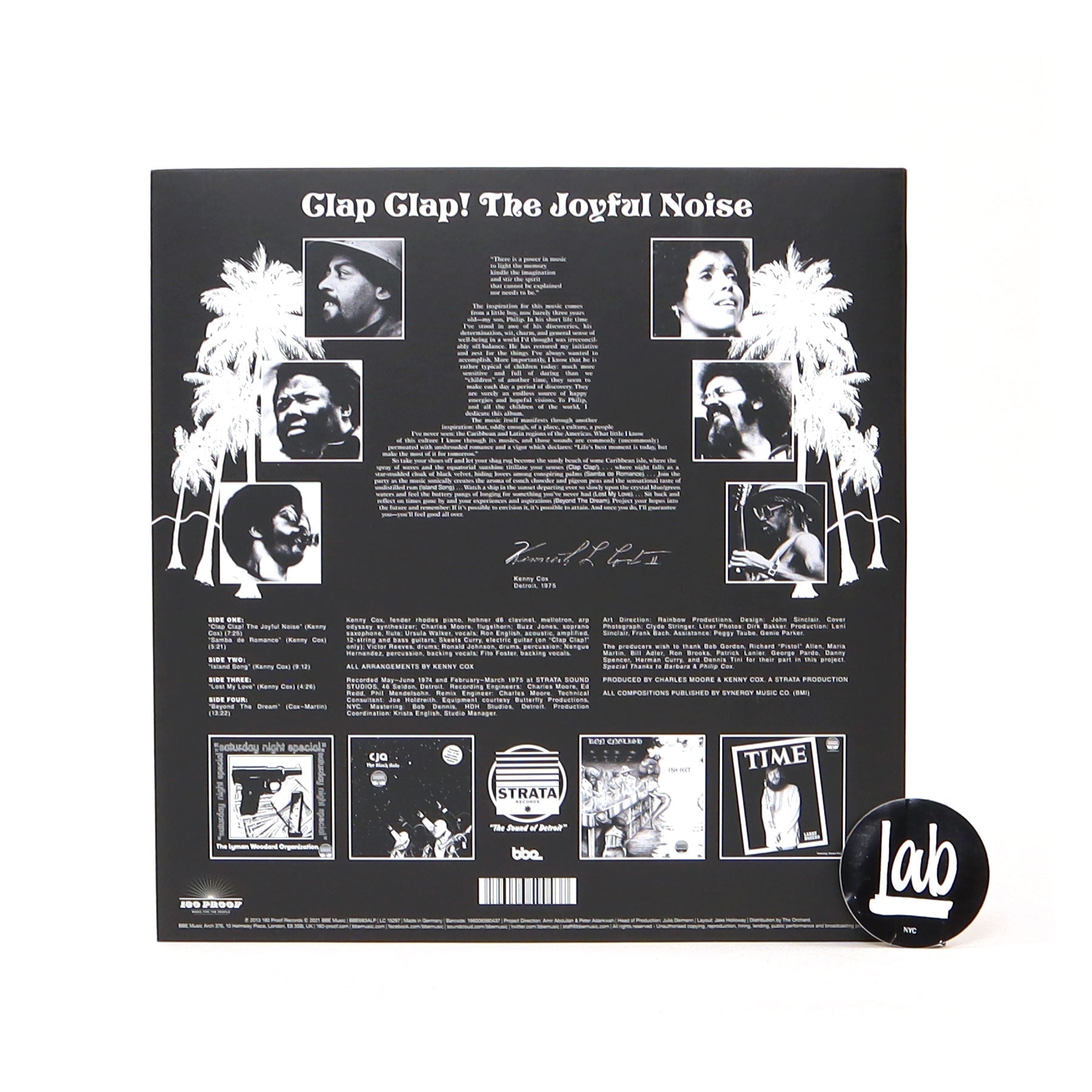 In 1974, Strata Records Inc. was well known in Detroit for their art gallery, live music venue and record label, turning out records by artists like Kenny Cox and Lyman Woodard. After working on an online museum based on lost youth culture in Detroit, vinyl excavator and DJ, Amir Abdulah, was inspired to reintroduce the label to the world. Although The Lyman Woodard Organization's Saturday Night Special is perhaps the jewel of the label, it was the never before released Clap Clap! The Joyful Noise from Kenny Cox that Amir decided to release. This visionary piece of Latin infused jazz was inspired by both the innocence and zeal of Cox's 3-year-old son, Philip, and also the culture of Latin America and Caribbean lands Cox admits in the album's original liner notes that, "oddly enough…I've never seen." There are traces of samba and bossa nova throughout the albums 5 tracks, all underpinned by a mellow groove. The two closing tracks may be what draw most listeners in. "Lost My Love" takes "Feel Like Making Love" and wraps it in Rhodes drenched chords and strings. While "Beyond The Dream" is a 13 minute long poly rhythmic journey.