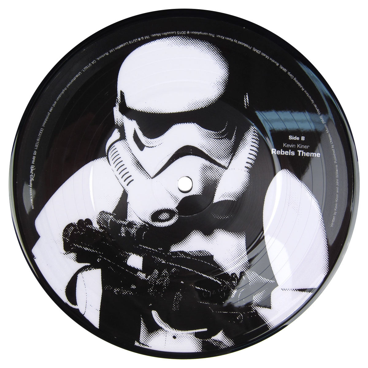 Kevin Kiner's epic theme for Star Wars Rebels, now on limited pic disc 45! Includes the original version with all its glorious symphonic orchestration, plus the Flux Pavillion remix that turns it up into EDM territory. Double sided pic disc featuring Kanan and Ezra on one side and a classic Storm Trooper on the other. Only 3500 numbered copies.