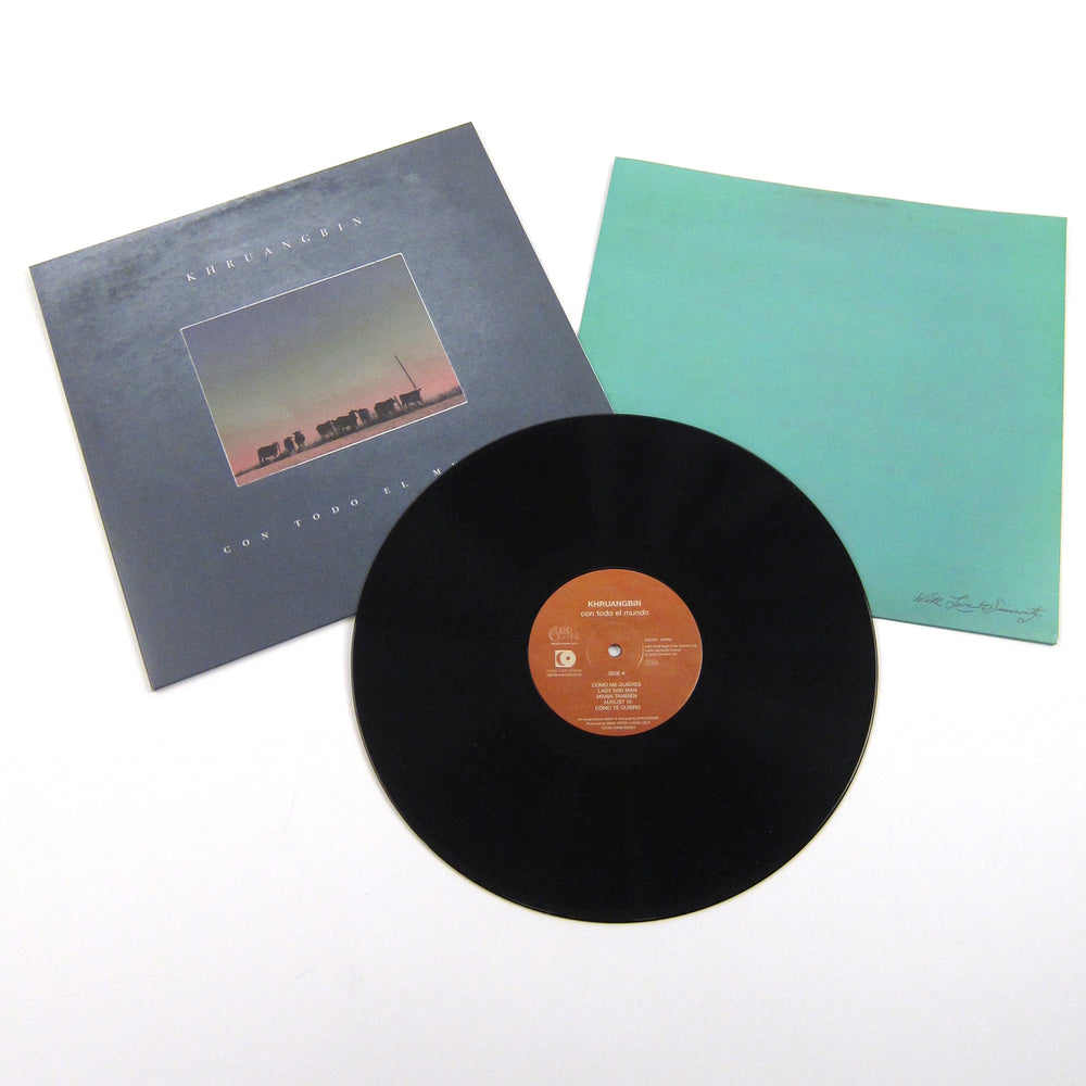 "My grandpa would always ask me 'Como me quieres?' ('how much do you love me'?), and he'd only ever accept one response. 'Con todo el mundo' (With all the world)." This anecdote by Khruangbin singer and bassist Laura Lee illustrates not only the tender sentiment pulsing through the Texas outfit's sophomore record, but the globetrotting medley of influences the band pour into their writing and recording process as well. 2015's The Universe Smiles Upon You, a Lab fave, was fueled by a suitcase full of obscure 1970s Thai pop & rock cassettes, and this time the crew dig into outsider strains of funk and soul from Iran to inform their singular brand of dusty desert funk; the result sounds something like Shuggie Otis splitting a dutch with Omar Souleyman. While most acts wishing to channel the non-traditional modes and scales of middle eastern music might end up lazily appropriating surface tropes or copping an easy sample, Khruangbin take the time to carefully digest the sounds and respectfully weave these influences into the DNA of the ten songs on Con Todo El Mundo. The catchy flourishes of Mark Speer's killer eastern guitar riffs on "Maria También" are played with such soul and sincerity, we probably wouldn't have even caught the foreign influence if we didn't read the press release first. While the instrumental tracks are enough to get any rare groove fetishist sniffing around, Laura Lee's occasional heavenly vocals take these songs to another level; check out the stirring refrain on album coda "Friday Morning." Other crucial cuts: "Evan Finds The Third Room," "Shades Of Man," "Como Me Quieres" and "Lady And Man." Recommended.