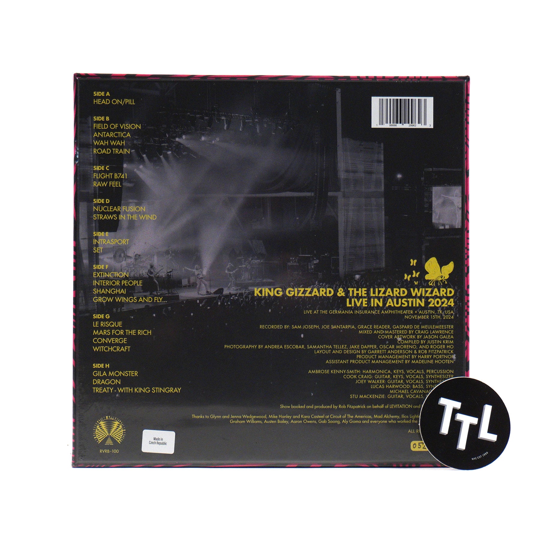 "One of the greatest shows we’ve ever seen – you know we had to press this one up! In 2014 we were lucky enough to host King Gizzard & the Lizard Wizard’s first show in the U.S. @ Austin Psych Fest and 10 years later even luckier to have them back, playing the largest outdoor amphitheater in Texas, recorded live in Austin on Nov 15, 2024!" - The Reverberation Appreciation Society