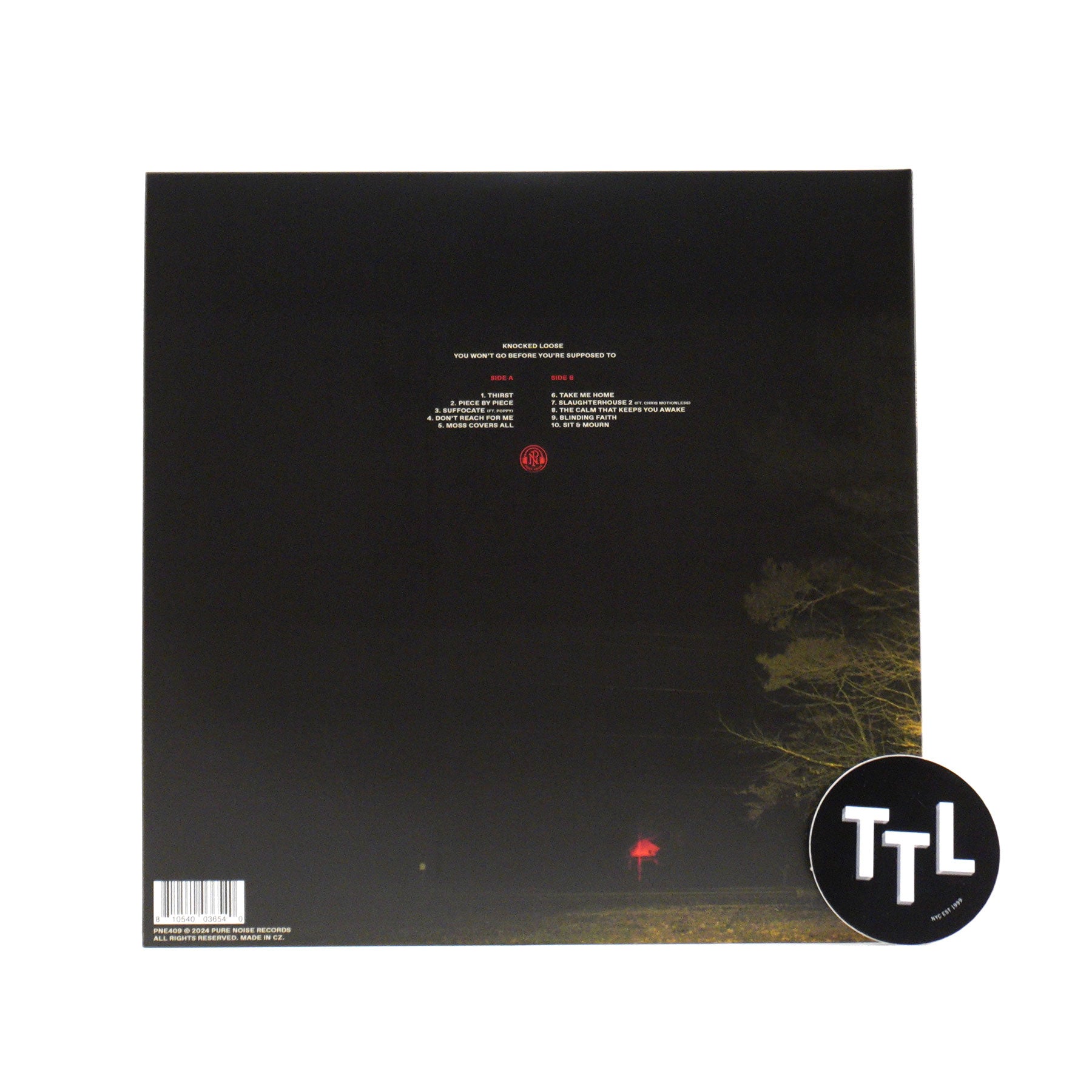 "As Knocked Loose chipped away at what would become their third album, they felt the pressure from all sides. Internally, there was the need to challenge themselves as songwriters while retaining the merciless intensity and unflinching honesty that have always been their calling cards — and to also live up to the sizable expectations that followed in the wake of 2019’s A Different Shade of Blue, one of the most acclaimed metallic-hardcore albums in recent memory. The creative process was arduous, with the band writing close to 40 songs across a span of four years before locking in the 10 tracks that make up new LP You Won’t Go Before You’re Supposed To. But in the end, vocalist Bryan Garris, guitarists Isaac Hale and Nicko Calderon, bassist Kevin Otten and drummer Kevin 'Pac Sun' Kaine honed a diverse, cohesive and savagely aggressive album that both sums up the massive strides they’ve taken during their decade as a band, and asserts their boundless potential going forward." - Pure Noise