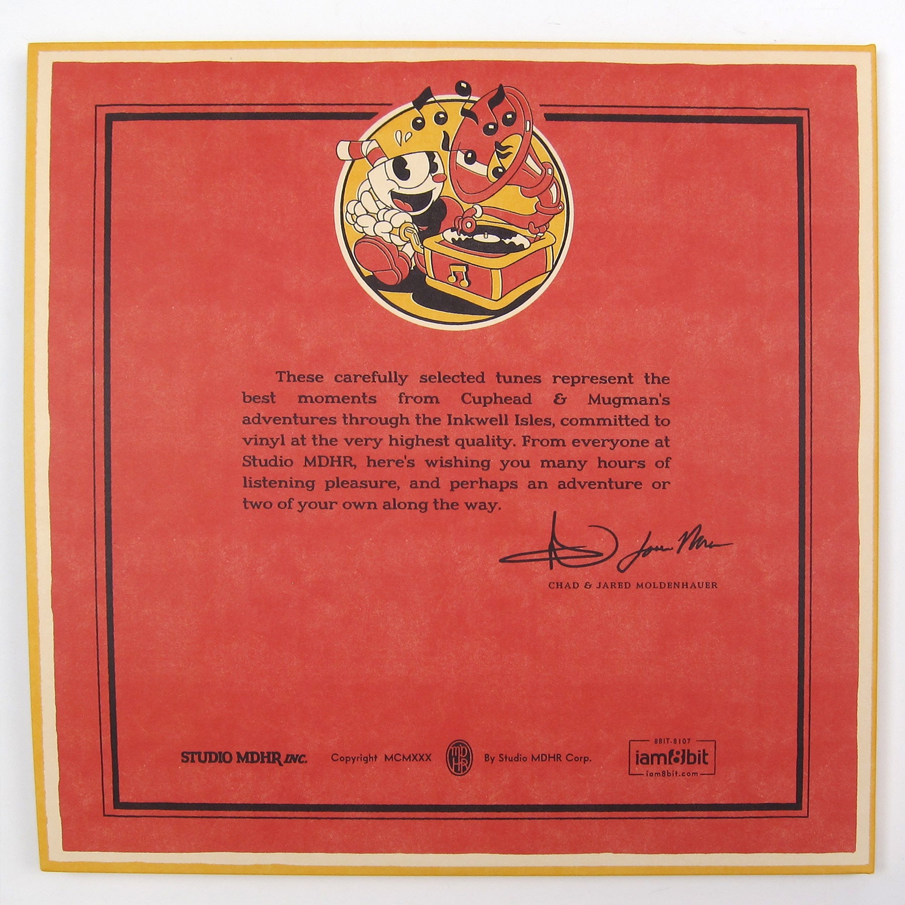 Cuphead Classics Compiled! 2017’s Cuphead is a retro game like no other - a wonderland of 30’s style hand-painted animation with a bumping soundtrack of jubilant Jazz and Big Band bangers. Following the success of their super-sold-out 4xLP set, iam8bit has curated a selection of Kristofer Maddigan’s acclaimed score onto 2 LPs, featuring previously unreleased solos. Comes pressed on 180 gram vinyl, housed in 1930's style packaging designed by Jango Snow and Studio MDHR. Don't miss out on this version!