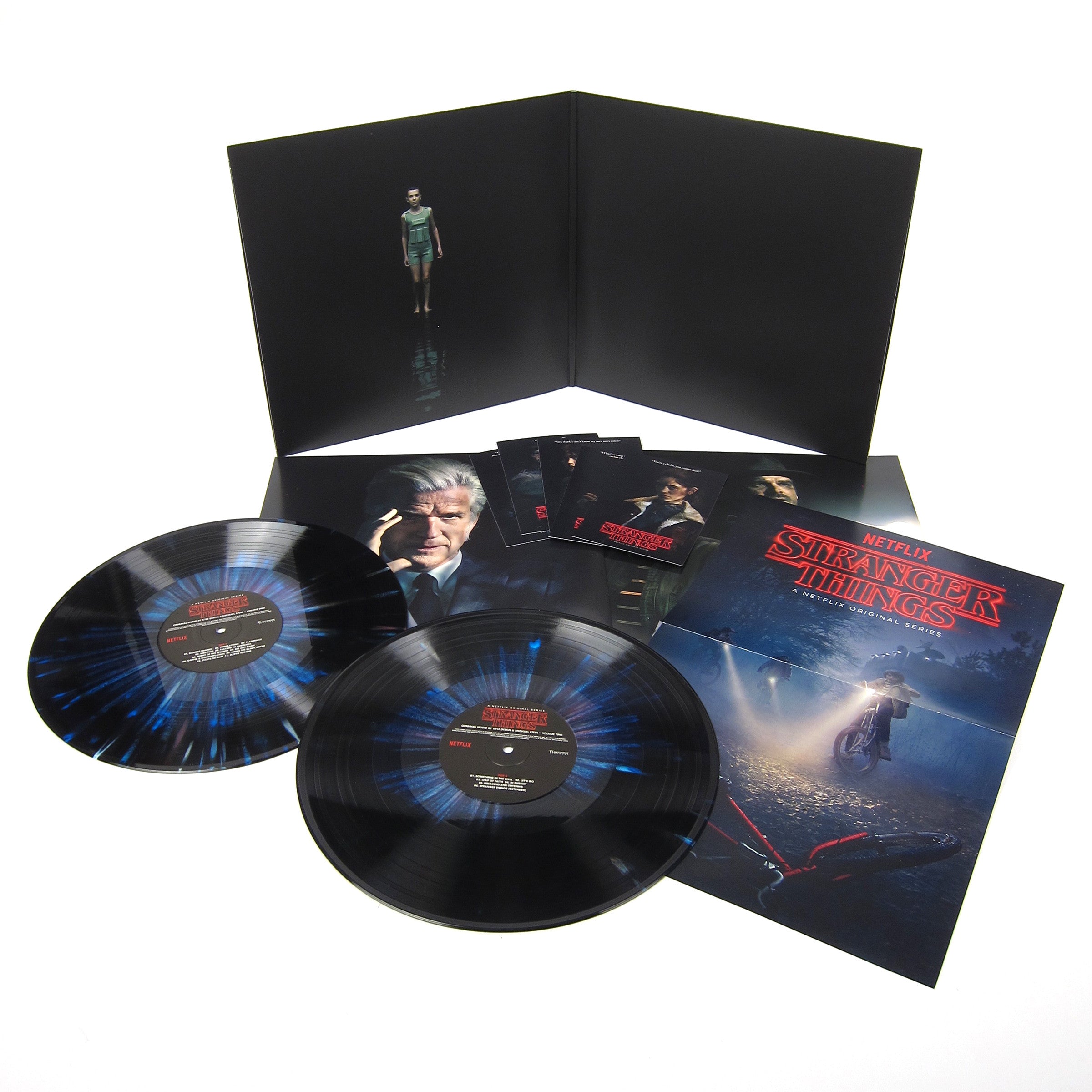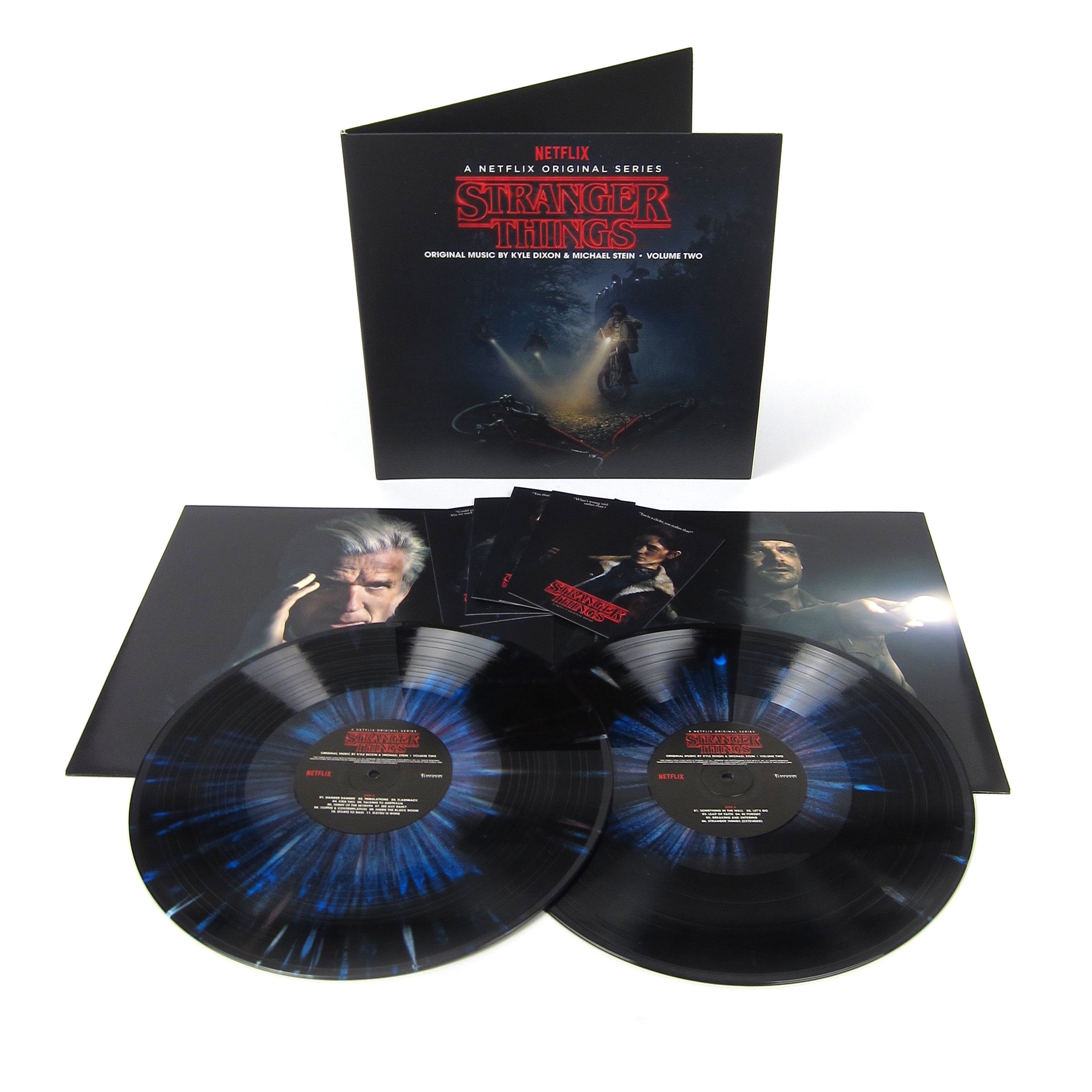 Deluxe pressing! Kyle Dixon & Michael Stein's soundtrack to the hit Netflix series Stranger Things gets a special edition repress on beautiful blue & red splatter vinyl, complete with brand new artwork, fold out poster, 4x6 character cards, and upgraded print stock. The duo from the band S U R V I V E absolutely nailed that retro 80's horror score vibe with analog synthesizers galore done up in classic John Carpenter style. Fans of the show already know how much the music played a crucial part in setting the tone for the Duffer brothers nostalgia-soaked sci-fi tale, and even if you haven't seen it yet (ahem, get on that!) the music stands on its own as a brilliant and brooding work of analog synth mastery. Volume two features 39 tracks from the show including an extended version of the Stranger Things theme, "I Know What I Saw," "Danger Danger," "Speak Of The Devil," "Kids Too," "Leap Of Faith," and many more. Recommended.