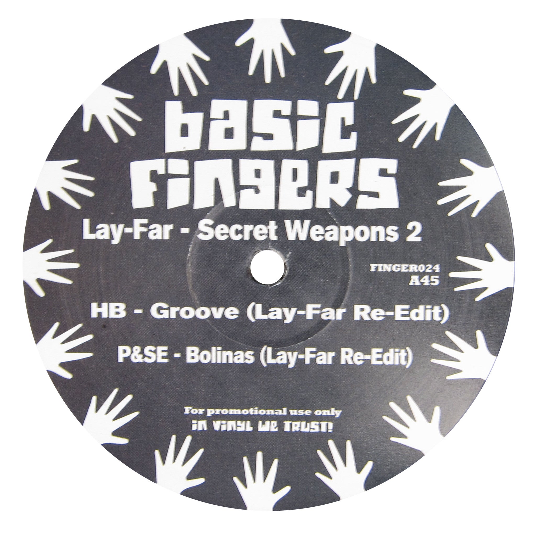 Another round of edit heat from Lay-Far on Basic Fingers. For Secret Weapons 2, the Russian DJ/B-boy supreme offers a prime selection of cuts ranging from breaks classics, dub treats, and digger delights, all expertly edited to work the dancefloor. Get the party live with the percussion heavy edit of Hamilton Bohannon on "Groove," while Pete & Sheila Escovedo's "Bolinas" take things deeper into groovy latin territory. Flipside features Pleasure's funk classic "Bouncy Lady" with the break extended for the B-boys to get down, and Mad Professor's "Soul African Crossfire" wraps it up dubwise. The title doesn't lie, these are definitely on secret weapon status!