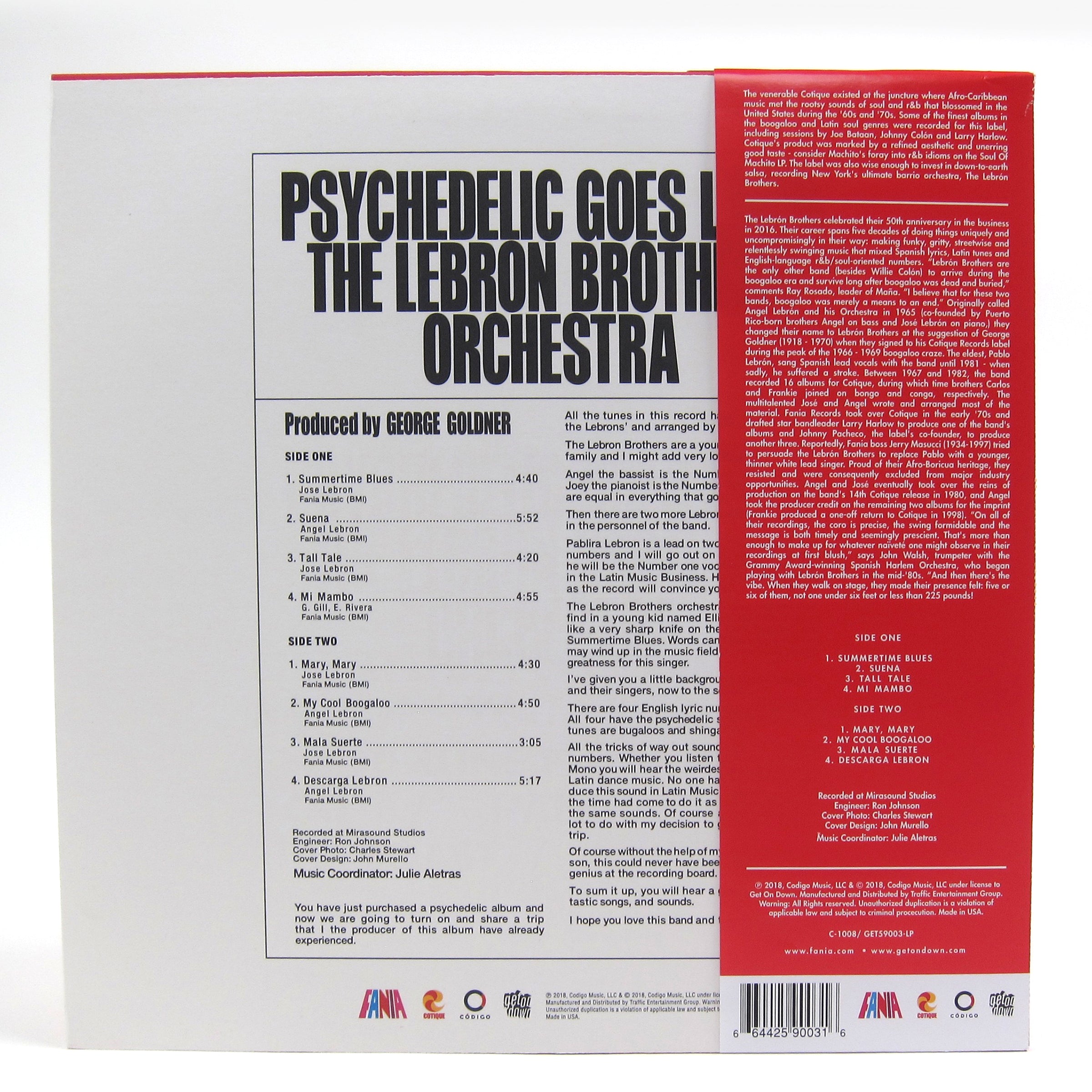 Latin jazz meets the late 60's way-out sound for the Lebron Brothers debut. Originally released in 1967 on the short-lived Cotique label (acquired by Latin heavyweight label Fania in '71), Psychedelic Goes Latin features some of the "weirdest sounds ever cut in Latin dance music" waxes Cotique label head George Goldner. Goldner goes on to say "no one has ever dared to produce this sound in Latin Music in the past, but I felt the time had come to do it as all past records had the same sounds." Psychedelic Goes Latin opened up a new era in Latin music, and songs like "Summertime Blues," "Tall Tale," "Mary, Mary," and "My Cool Boogaloo" are sonic fireworks in this eclectic production. 8 tracks in all. Released on Get On Down.