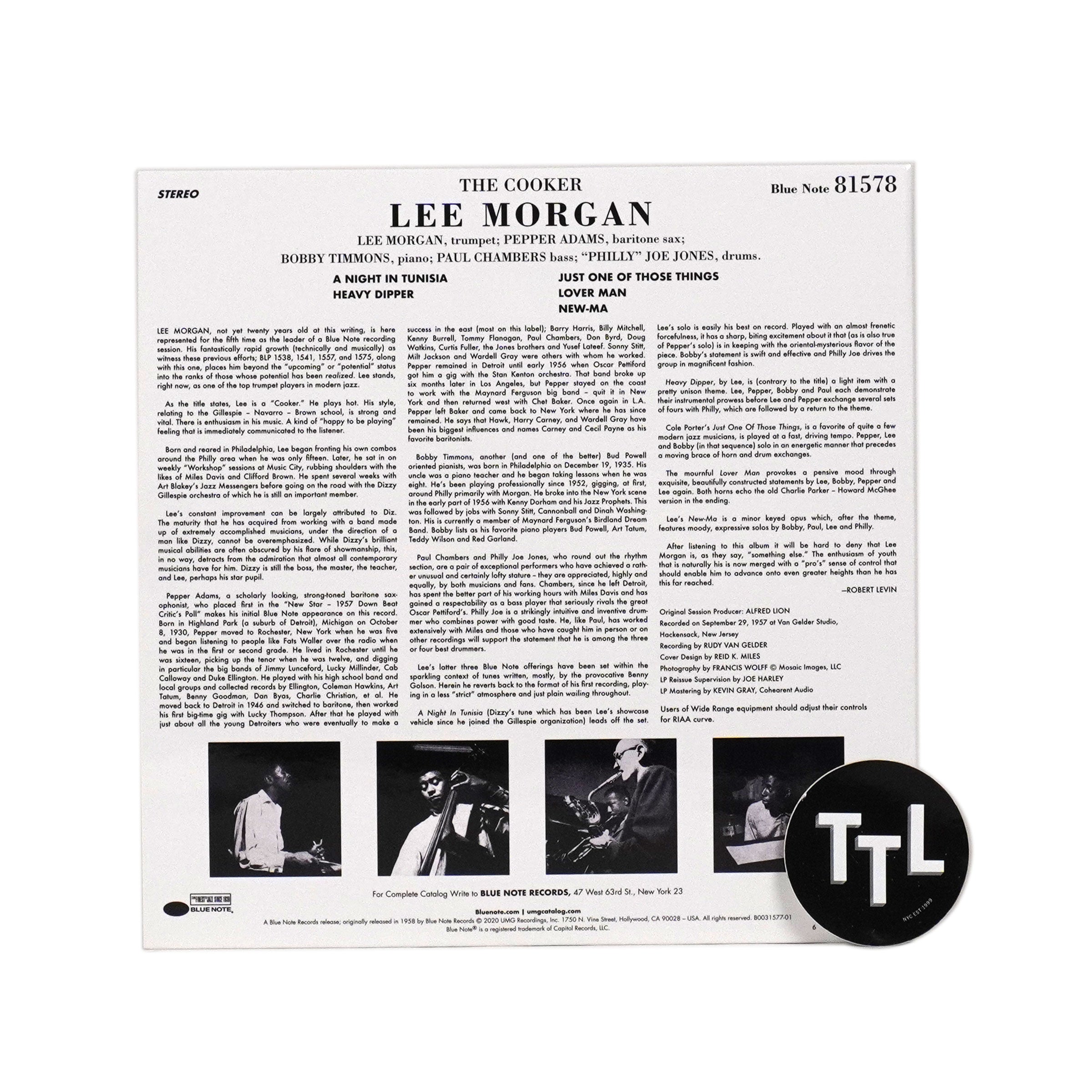 "Listening to Lee Morgan blow his molten solo on 'A Night In Tunisia,' the opening track of The Cooker, it’s hard to fathom that he was only 19 years old at the time. Recorded just 2 weeks after Morgan’s dazzling performance on John Coltrane’s masterpiece Blue Train in September 1957, The Cooker was in fact Morgan’s 5th Blue Note album as a leader. Bassist Paul Chambers and drummer Philly Joe Jones (both of whom also played on Blue Train) are joined by baritone saxophone master Pepper Adams and the great Bobby Timmons on piano on this superbly swinging session. Blue Note Records’ Tone Poet Audiophile Vinyl Reissue Series is produced by Joe Harley and features all-analog, mastered-from-the-original-master-tape 180g audiophile vinyl reissues in deluxe gatefold packaging. Mastering is by Kevin Gray (Cohearent Audio) and vinyl is manufactured at Record Technology Incorporated (RTI)." - Blue Note Records
