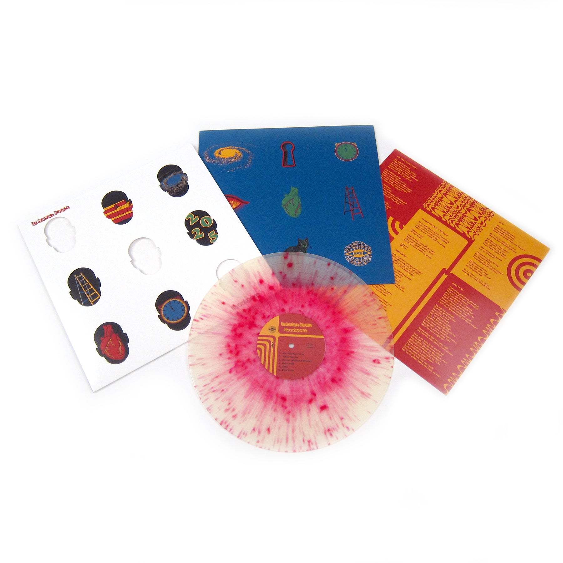 Headspace follows up Levitation Room’s acid-soaked 2016 debut Ethos with Headspace, further expanding upon their brand of reconfigured sixties-esque psychedelia. The band was formed in Los Angeles in 2012 by best pals Julian Porte and Gabriel Fernandez, who began their musical collaboration in a punk band called The Hits. They discovered their drummer Johnathan Martin when he borrowed a harmonica from them at a party, and soon added bassist and vocalist Jonathan Thiemens. Headspace integrates elements of soul, R&B, and heavier rock elements, a pleasant addition to the reverent and authentic garage rock of their debut. “Mr. Polydactyl Cat” begins the disc with heady electric guitar that warps and drifts around smooth organ lines, monotone spoken vocals and flanged solos. “2025” is psychedelia with twang, sharp drumrolls and kaleidoscopic guitar. “Stars Speak Softly” is an AOR-style ballad, “Ooh Child” is a charming West Coast take on classic soul. Packaged in a lovely die-cut sleeve with reversible artwork, this record is pressed on indie exclusive “blood splatter” colored vinyl and limited to 250 copies.