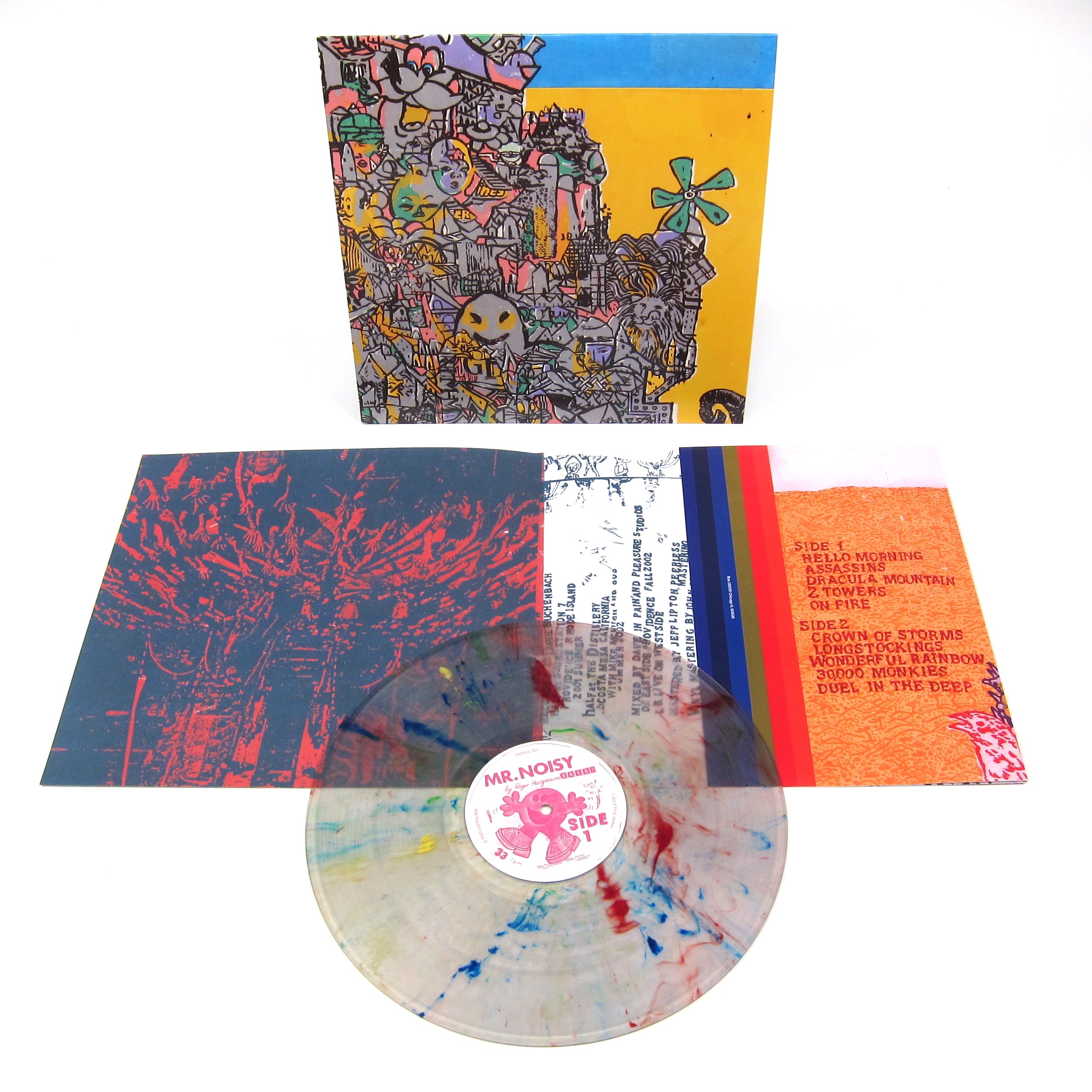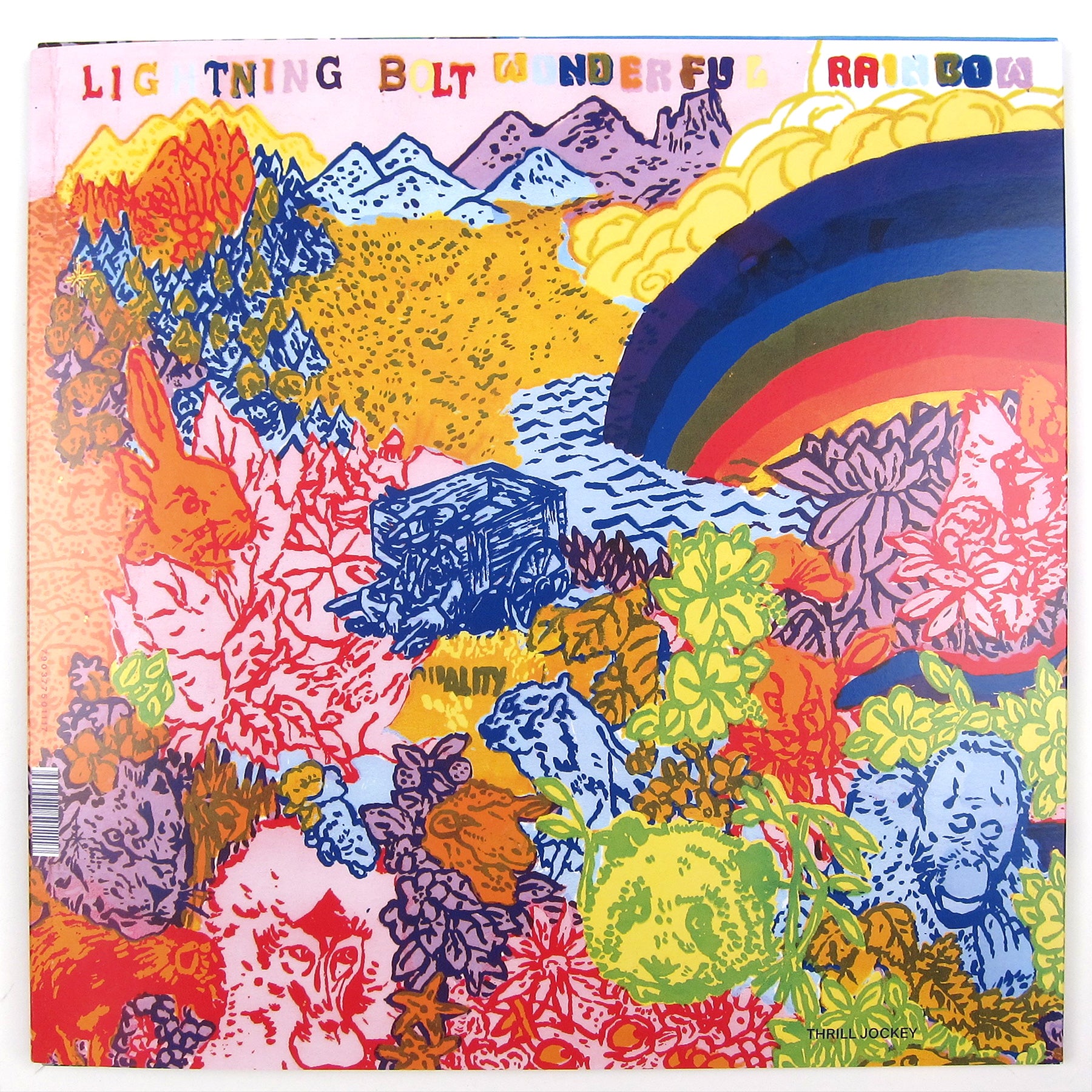 Lightning Bolt is a noise rock band from Providence, RI, founded by Brian Chippendale and Brian Gibson while they were attending RISD in the late 90’s. There they rubbed shoulders with the bands that would become Black Dice and Animal Collective, performing heavily improvised sets in their unique ‘guerilla’ style - often performing in non-traditional venues and situations, including kitchens, sidewalks, parking lots, and venue floors. Ultimately, they sound loud, taking clear cues from Japanese noise musicians such as Boredoms and Melt Banana, but the group claims Philip Glass and Sun Ra as major influences. Wonderful Rainbow is their third album and is considered the group’s most accessible, rugged bass guitar and fierce drumming nearly approaching tunefulness. Pitchfork included Wonderful Rainbow in their their list of top 200 albums of the 2ks, demonstrating the long-lasting impact of what is a rather left-field record. “Dracula Mountain” is mosquito-buzz guitar countered by sawtooth bass riffs, incomprehensible vocals drowned in the mix. “2 Towers” begins with double-time kick subsumed by shrieking guitar, rolling fills, and overdriven guitar skronk. “Asssassins” is…. almost 4/4, power-drill basslines and furious congas. This record is pressed on limited edition "rainbow splatter" colored vinyl, and features refreshed artwork (created at the time of the album's original release) by Brian Chippendale.