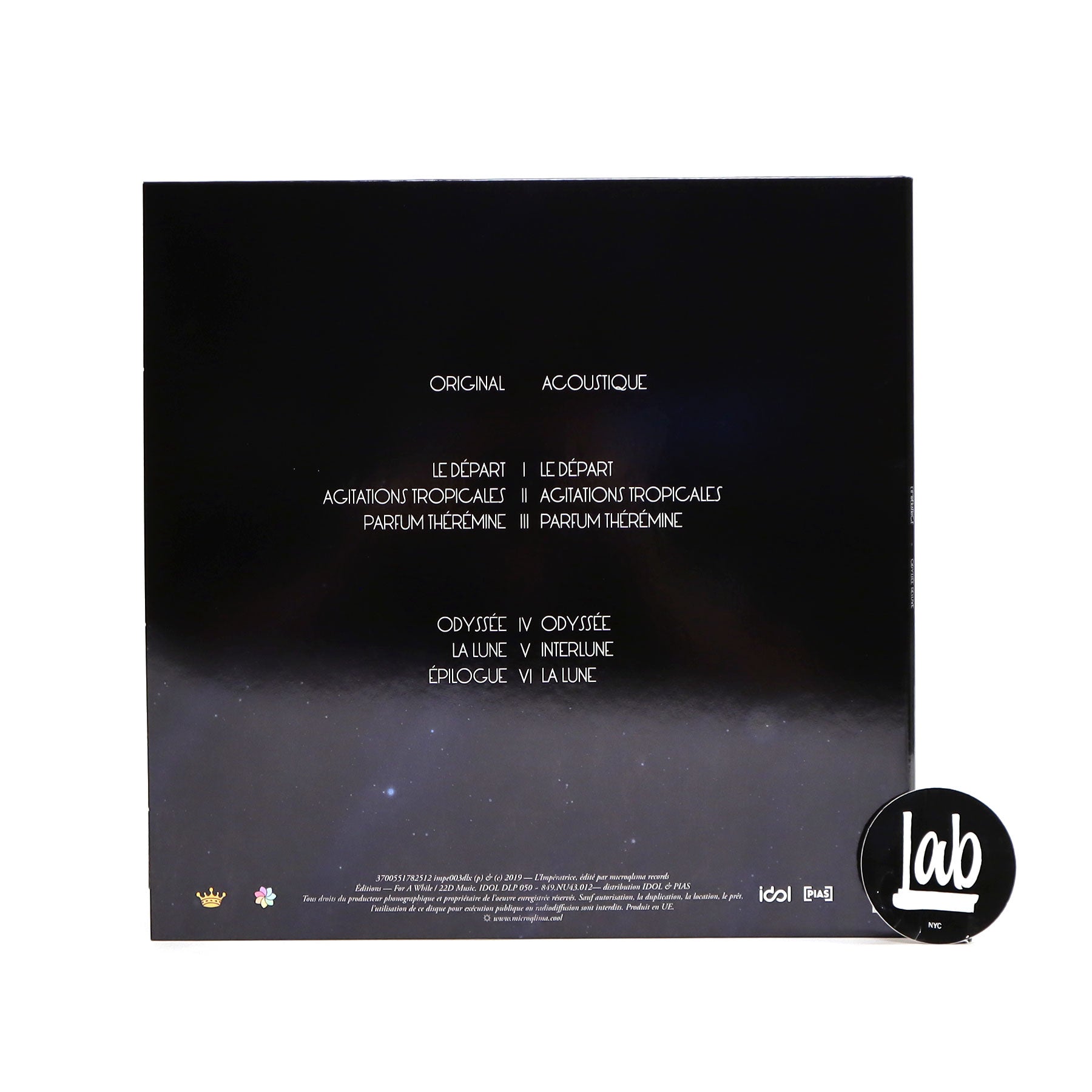 "After Matahari and Tako Tsubo, their two full-length albums, the French sextet L'Impératrice re-releases their EP Odyssée (Deluxe). Available for the first time in the US on an exclusive double LP. L'Impératrice takes us on a dreamy Odyssée, exploring a variety of sounds and sensations for a colorful result. The third EP of the Parisian sextet offers us an original version and an acoustic version, including the famous tracks, 'Agitations tropicales' and 'Parfum thérémine'. Odyssée is without a doubt their most conceptual and daring EP, and the one that launched the band! The double vinyl comes in an exclusive shiny packaging with a silver lamination and includes two posters." - Microqlima