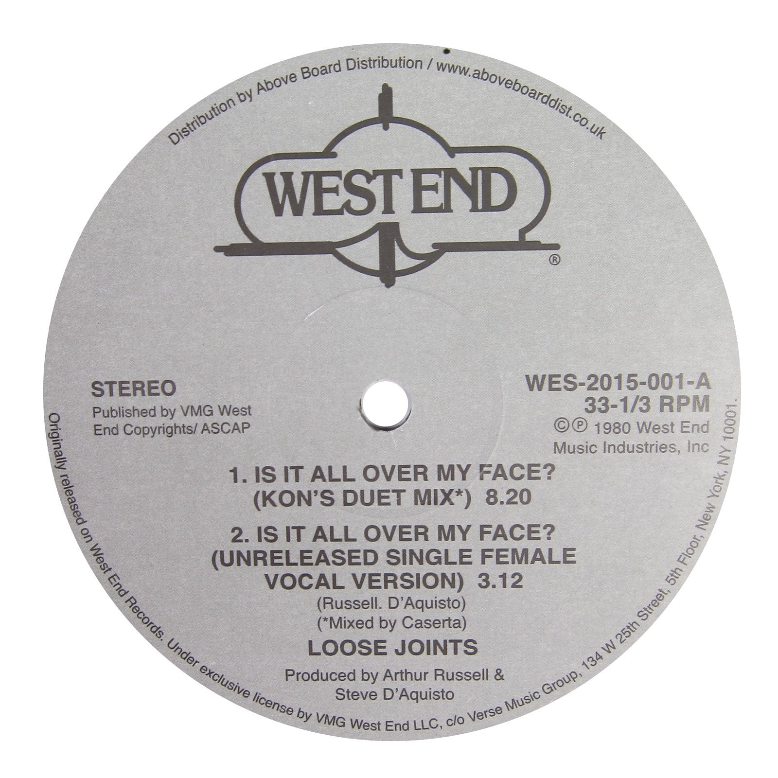 Heat alert! Kon coming through with a crucial edit of the timeless West End classic "Is It All Over My Face?". Sourcing the original stems, digger/producer extraordinaire Kon (King Of Nothing) totally recreates the track using BOTH the female and male vocals for a completely new "Duet" version. To top it off, he's given the track a fresh mixdown that breathes new life into the Arthur Russell-produced classic. The result is sure fire floor worker that will bring out dancers young and old. Worth it for this one alone, but West End has gone all out and hooks up a previously unreleased Female Vocal 7" version AND a 13 minute unreleased version of the original too. Essential material for the disco crate. Recommended.