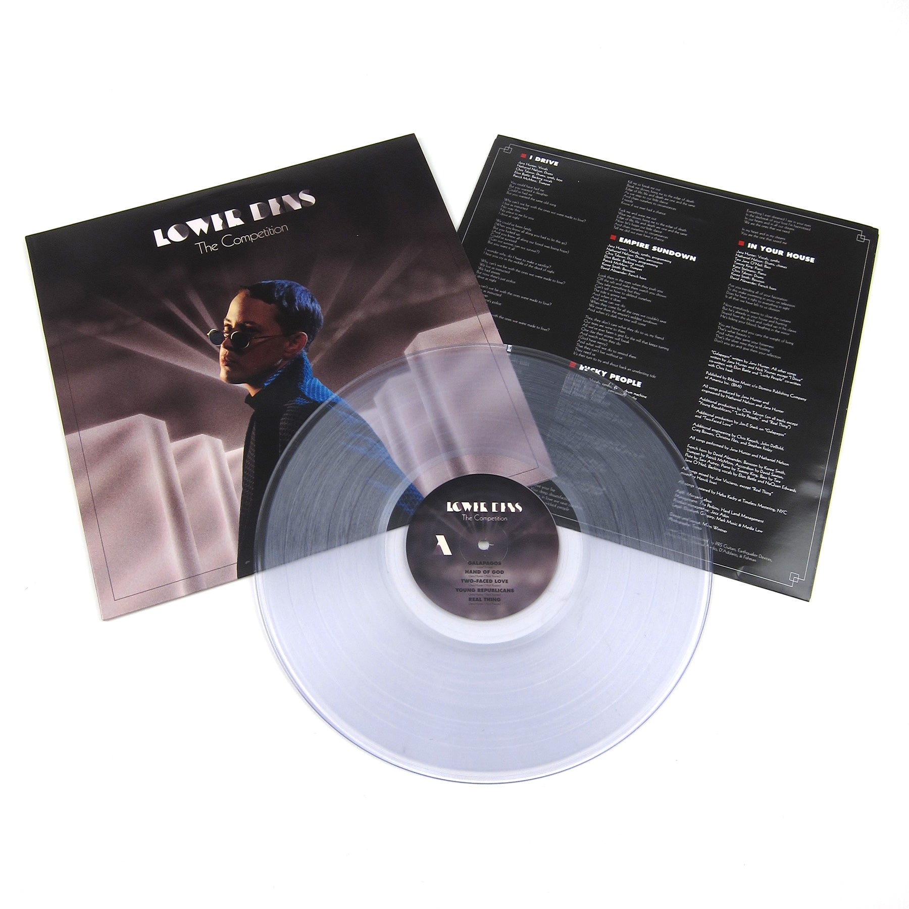 Lower Dens is a Baltimore-based band led by songwriter Jana Hunter. The origins of the group begin with Hunter’s last tour as a solo act, leading to the realization that their problem wasn’t being on the road, but the solitude that comes along with being a solo musician. Hunter's backing band was hired on full-time after the tour, leading to the founding of the group and their first record Twin-Hand Movement. The album was a reverb-heavy guitar-based effort, but by 2012’s Nootropics the group began to integrate synthesizers into their sound, which was shifting ever closer to Beach House than Diiv. 2015’s Escape From Evil was their second record for Domino imprint Ribbon Music, and a well-received step even further into an 80’s inspired vibe. Lower Dens has reconfigured to a duo of Hunter and multi-instrumentalist Nathaniel Nelson, giving the songs a more direct, immediate feel. The Competition considers the “socio-psychological” impact caused by the violence of capitalism and the free market. “Young Republicans” is a sarcastic takedown of the titular morons over Eno-esque glam synth minimalism, “Real Thing” is electric synth stabs and heatbeat kick, delicate guitars and fluid, pleading vocals, suitable for a John Hughes-esque montage. “In Your House” is rim-played snares and electric piano, a concise moment of vulnerability that rounds out the album. This LP is pressed on indie exclusive crystal clear vinyl and includes a digital download.