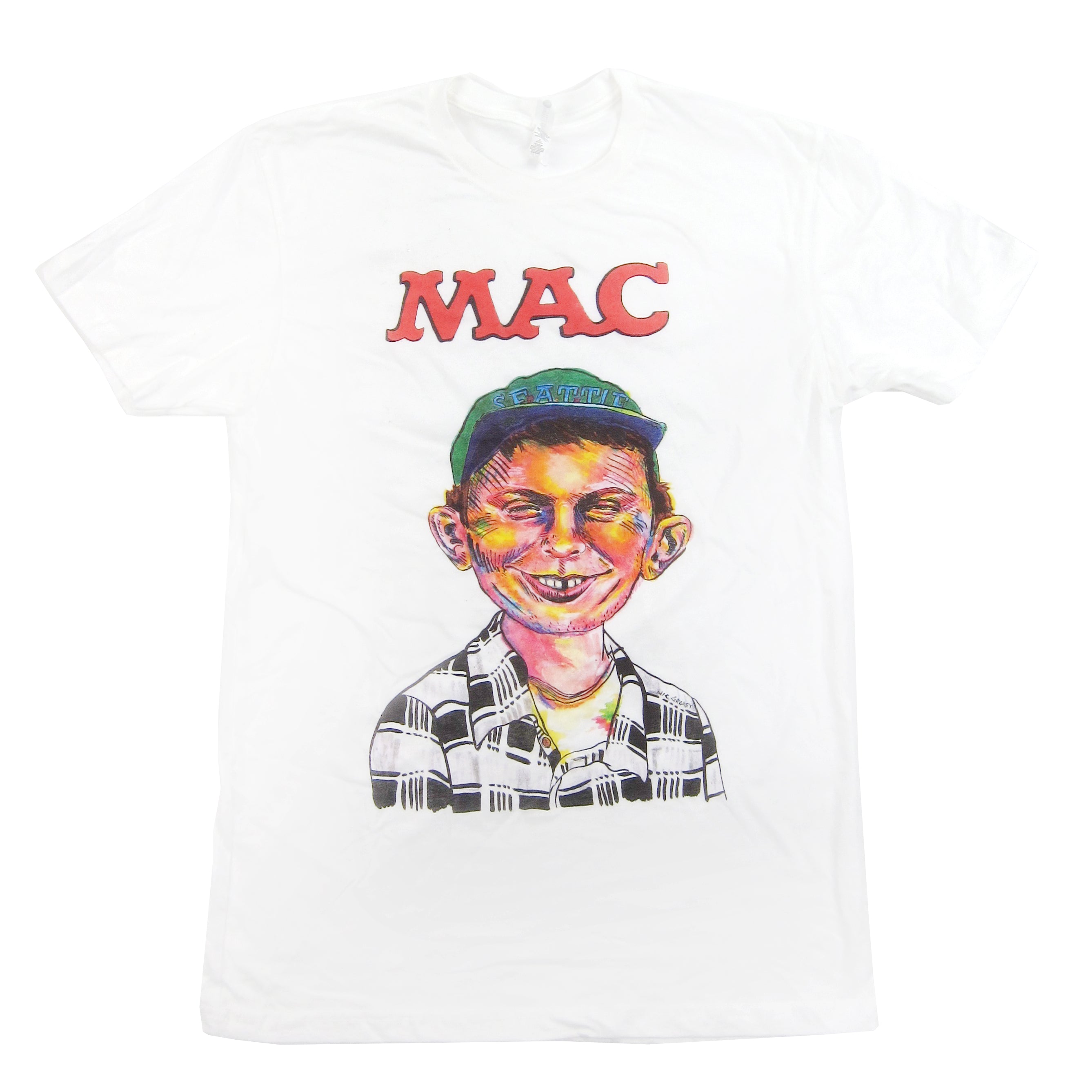 The Mac Demarco shirt you never knew you needed. Macky gets the Alfed E. Neuman treatment, complete with matching "MAC" logo. Comes printed on all cotton, standard fit tees.