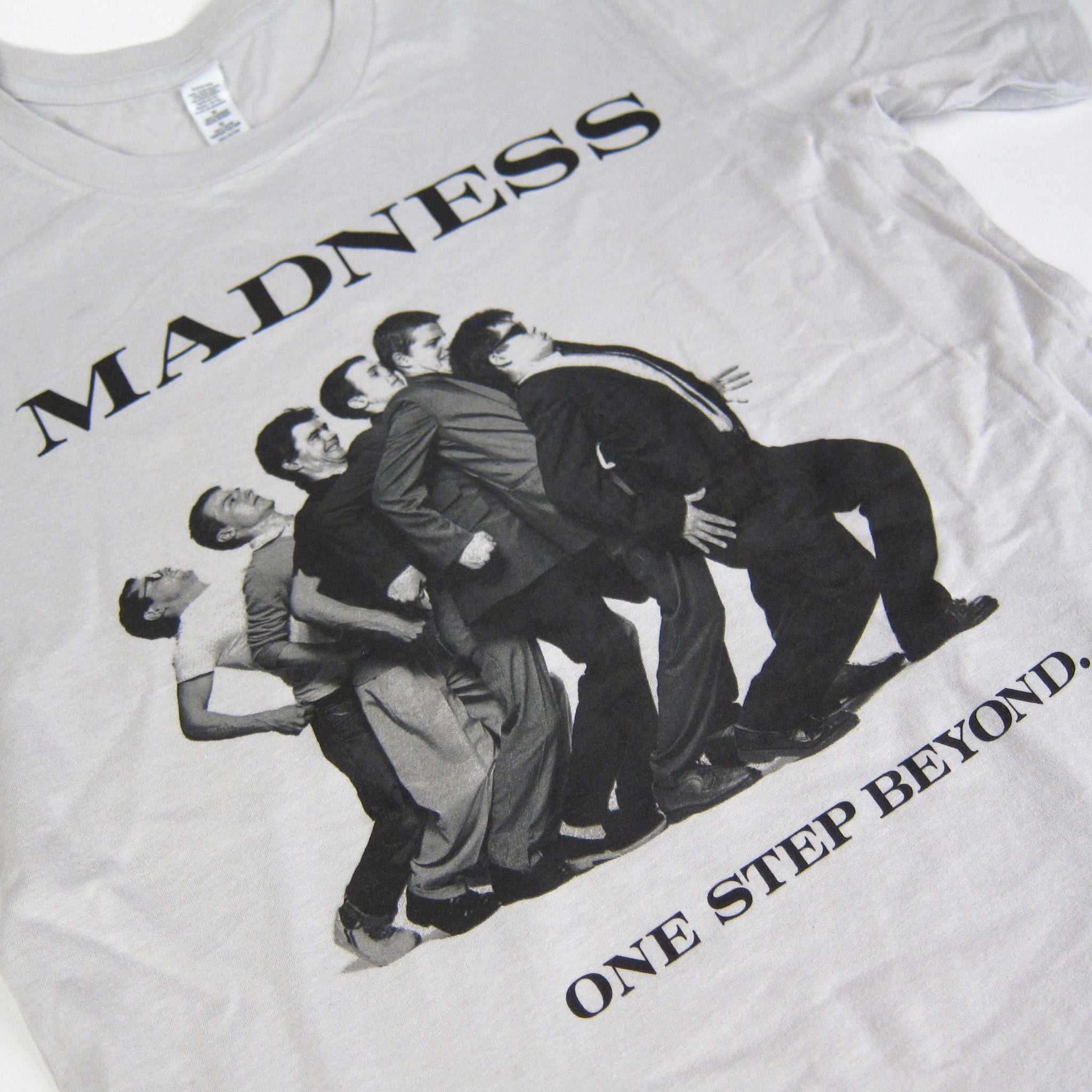 Hey you, don't watch that... watch this! Classic cover art from Madness' 1979 debut gets the shirt treatment. Printed up on light grey, all cotton tees. Standard fit for the ska fanatics.