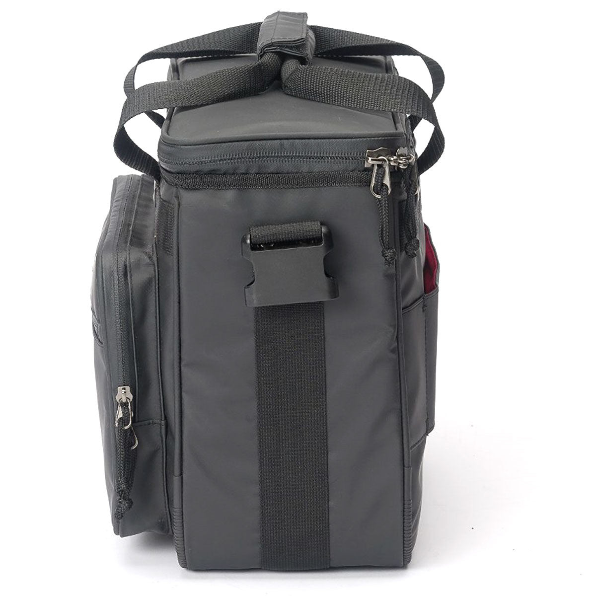 The LP version of the Riot bag holds up to 50 x 12" vinyl records and is constructed of durable, waterproof Tarpaulin with soft padded fleece inner lining. Rubberized corners add to the protection of your precious vinyl, plus a front pocket can hold 45’s, headphones, a needle-case and accessories. Adjustable shoulder strap and padded carrying handles makes it easy to carry.