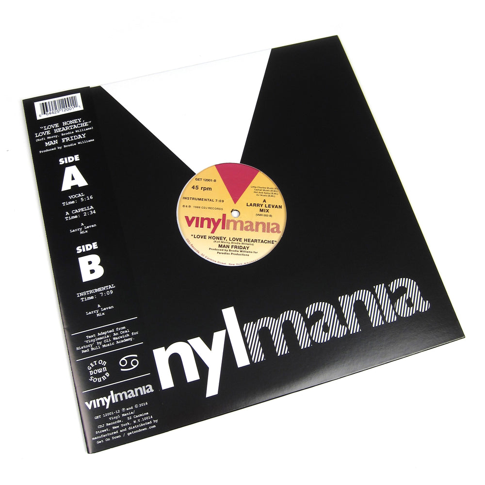 Man Friday was a group in the 80's consisting of Brodie Williams on production, Kofi Morny on vocals, and the legendary Larry Levan on mixdowns. They had a few notable releases in their day, but "Love Honey, Love Heartache"is definitely the stand-out. The track grooves on a rhythm very similar to Funk Master's 1981 jam "Love Money" with a mean synth bass line, tough drums, and Kofi's stellar vocals all dubbed out and mixed in classic Garage style by Levan. Here we have a super high quality reissue that look just like original 1986 copies on Vinyl Mania with fancy obi strip courtesy of Get On Down. Includes the original vocal version, instrumental and acapella. Recommended.
