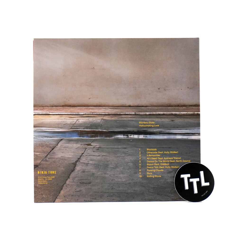• "Hallucinating Love has an earthy charm, echoing the countryside settings of those writing retreats. The woody soul of 'Blackoak' is buoyed by beautiful strings and syrupy analogue synth, or there's the cabin-folk of 'Rolling Stone' and the Celtic marching drums of standout track 'Peace Talk', on which Holly Walker delivers a truly superb vocal performance. She returns on another highlight, 'Otherside', too – a joyful blast of soul-pop that evokes careening along the coastline in California. The field recordings and samples in their music – for which the duo are known – give their sound a richly layered texture, like a dusty cassette tape found in the bottom of a glovebox. And here they take it all to the next level: 'Dance on the World', 'Otherside', 'Peace Talk' are among their most expansive tunes yet – evidencing just their skill as songwriters. Second single 'All I Need' is classic Maribou, a trick-mirror of melancholy and hope, with Andreya Triana's gorgeous vocal cushioned by a propulsive, glitchy trip-hop beat, brightly-lit guitar and ghostly omnichord. This being Maribou State, the songs are evocative and full of gorgeous details – see 'Bloom''s guitar line, unfurling like a flower, with drum flourishes that gently recall old-skool rave." - Ninja Tune