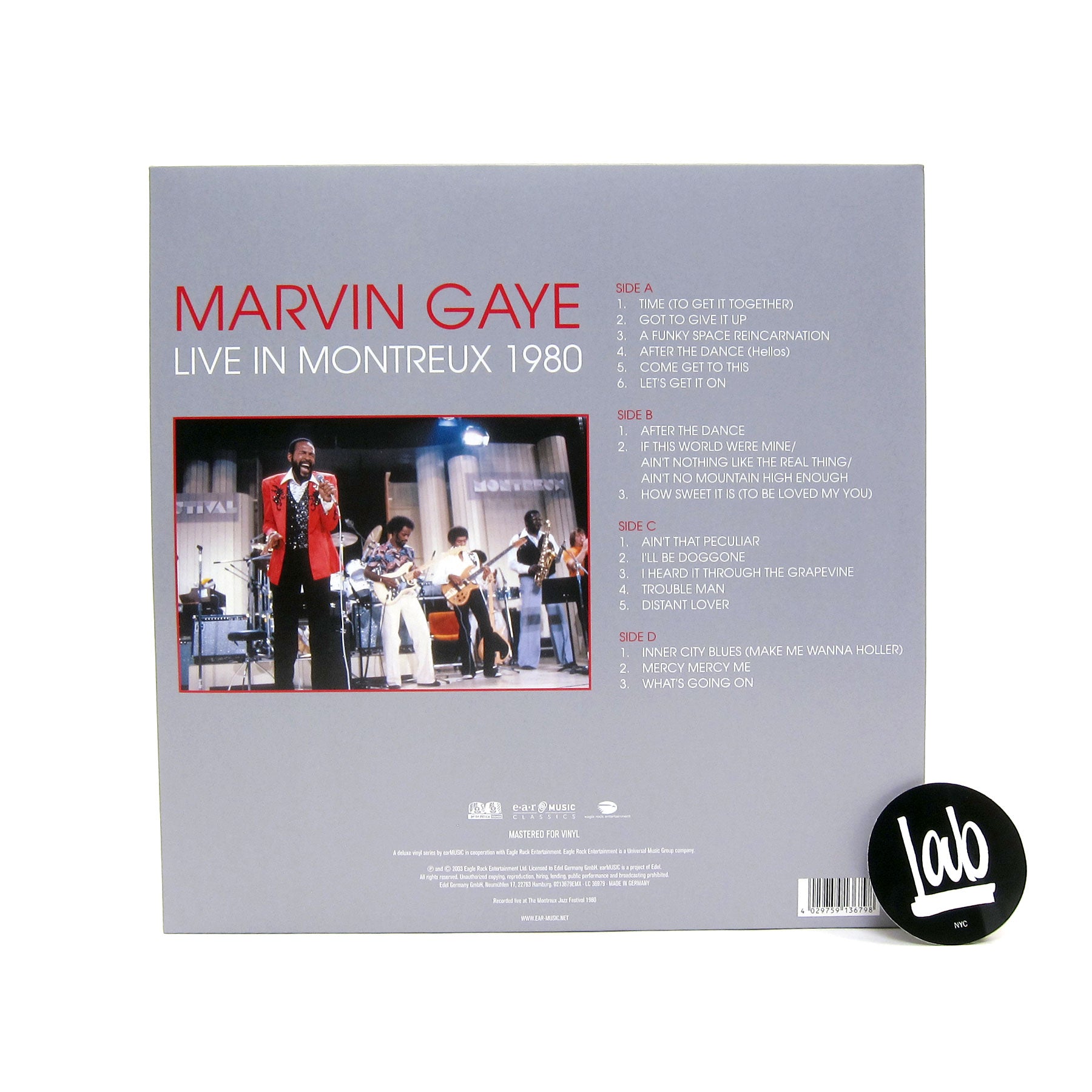 "Marvin Gaye blazed the trail for the continued evolution of popular black music: moving from lean, powerful R&B to stylish, sophisticated soul to finally arrive at an intensely political and personal form of artistic self-expression. His work not only redefined soul music as a creative force but also expanded its impact as an agent for social change. Marvin Gaye recorded at the Montreux Casino on July 7, 1980, during the Montreux Jazz Festival. This LP includes classics such as 'Let's Get It On', 'Ain't That Peculiar', 'Inner City Blues', 'Ain't No Mountain High Enough', 'What's Going On' and of course 'I Heard It Through The Grapevine'." - Earmusic