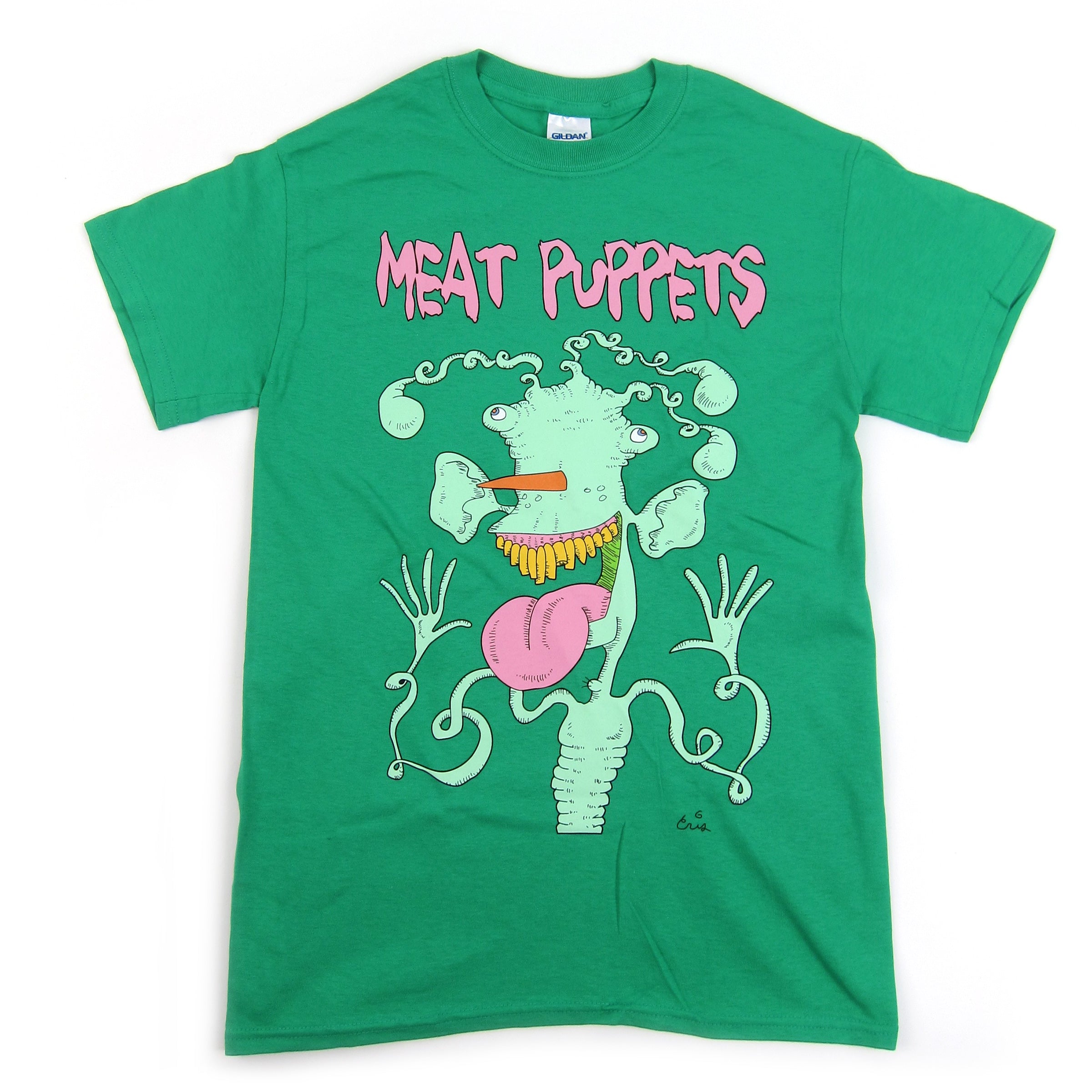 Attacked by monsters. Kissing dogs. Smoking and poking, changing in the blink of an eye. Fly high by my window at night. Official Meat Puppets tee featuring artwork by the bands' own Cris Kirkwood. Printed on all cotton, standard fit shirts.
