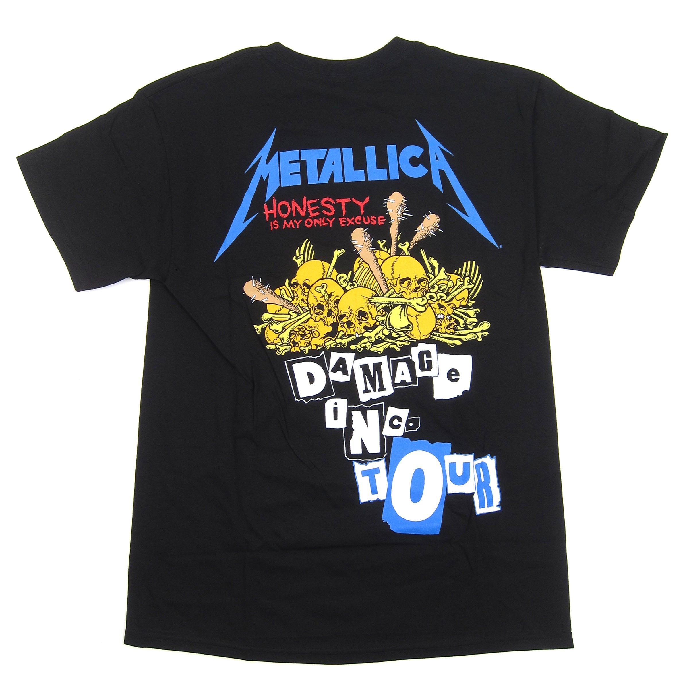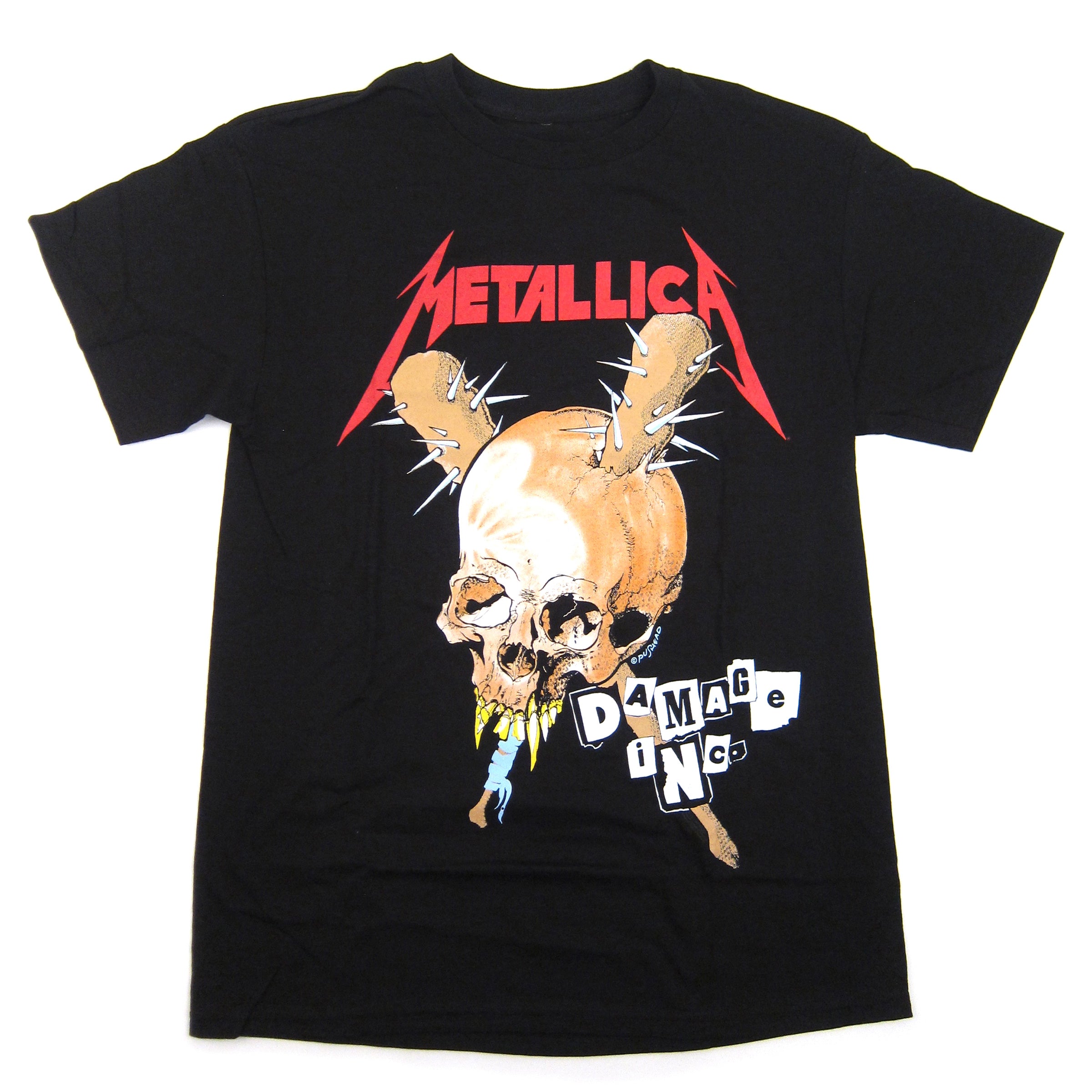 We Chew And Spit You Out. The closing track from Master Of Puppets is so bad-ass it warrants its own t-shirt. Leave it to frequent collaborator and all around genius Pushead to give the song the imagery it deserves, complete with requisite spiked bats and cracked skulls. Front and back print on all cotton tees.