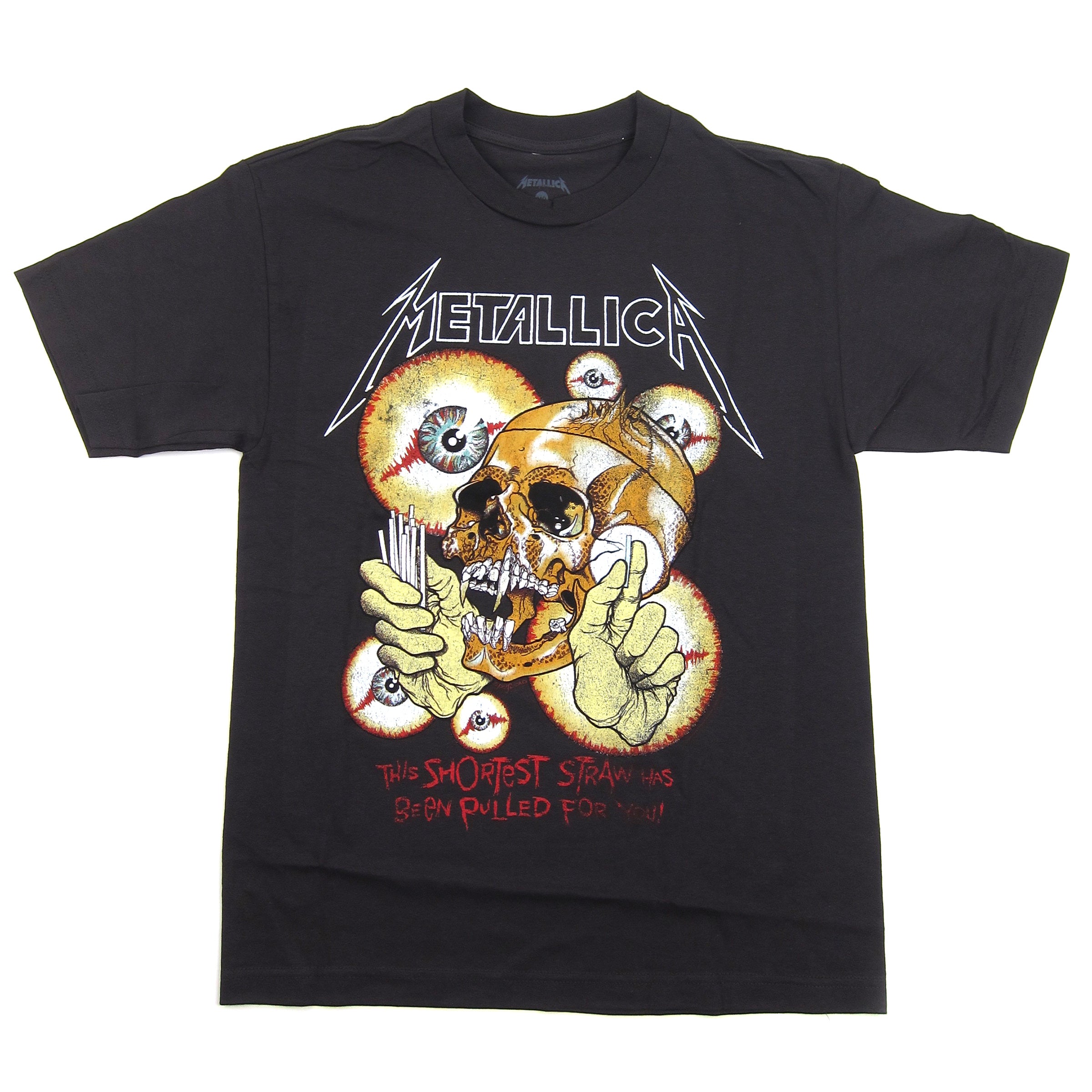 Pulled For You. Another incredible Pushead illustration for Metallica, this time inspired by "Shortest Straw" from 1988's And Justice For All. Front and back print on all cotton, standard fit tees.