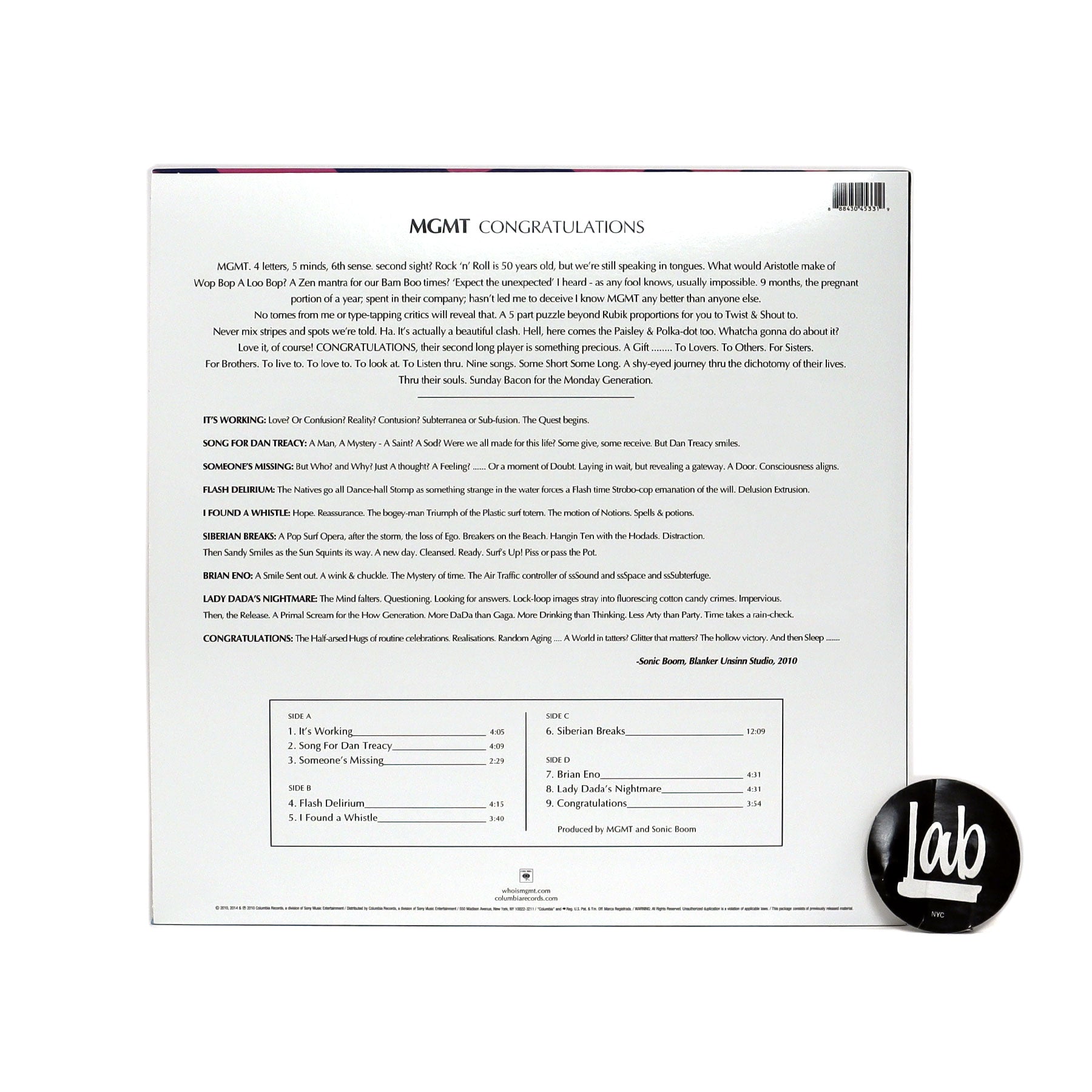 MGMT's sophomore full-length from 2010 gets a fancy 180 gram vinyl repress with a fresh remaster from the original tapes for tip top sound quality. On their second album, Ben Goldwasser and Andrew VanWyngarden drop the catchy pop of Oracular Spectacular and opt for a much more ambitious, experimental vibe, with co-production by Pete Kember (Sonic Boom, Spacemen 3, Spectrum). It almost seems like since securing their major label deal on Columbia, they've really decided to let loose and let the freak flag fly. And in this case, it's totally a good thing.