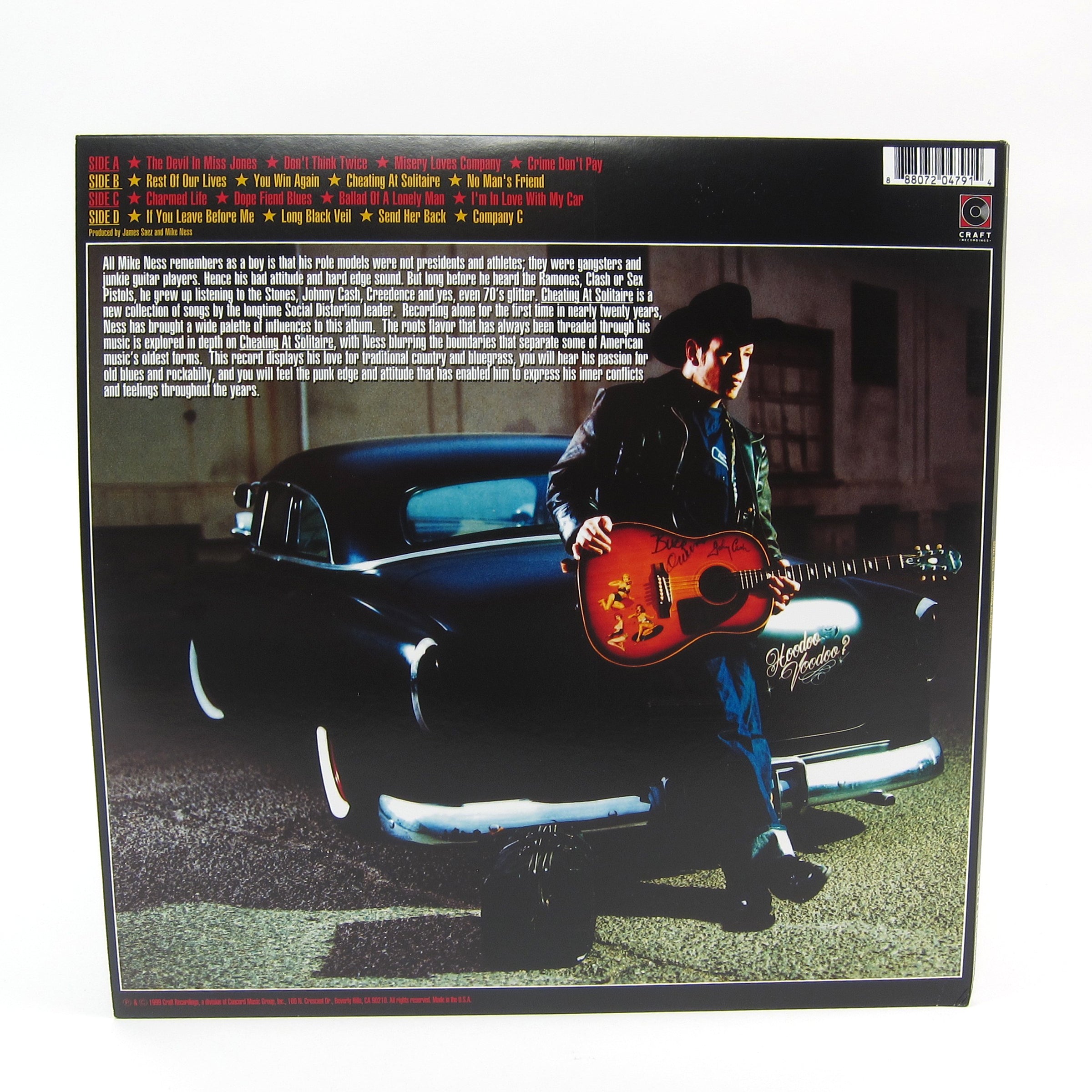 Debut solo studio album from Social Distortion frontman Mike Ness. Cheating At Solitaire was originally recorded in 1998 and featured a more roots rock n roll oriented sound than his main outfit's output. There are guest spots from Bruce Springsteen, Brian Setzer, and members of Royal Crown Revue. Ness was able to step away from his trademark punk sound and explore his influences with this release. Sixteen tracks in all. Released by Craft Recordings on double vinyl housed in a gatefold sleeve.