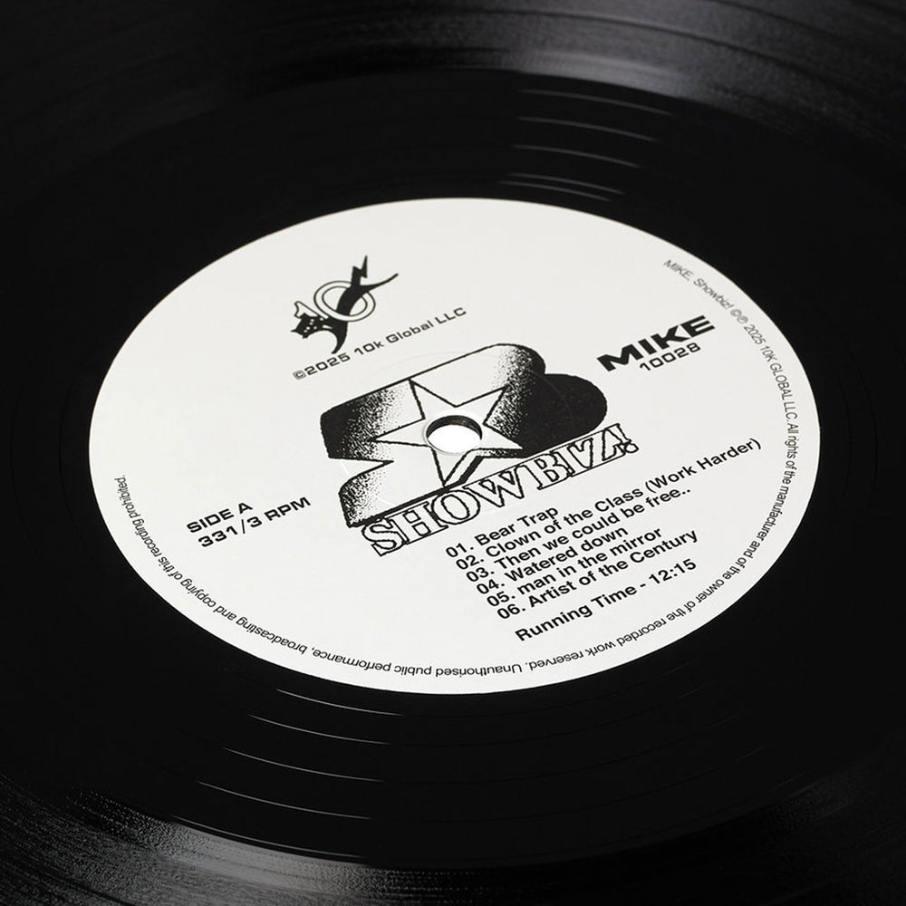 "Showbiz! is the tenth solo album by MIKE, released via his own label 10k. It sets a new benchmark for himself and his contemporaries as he steps into the next chapter of his career as a proven, essential voice in hip hop this decade. The record features 454 and duendita, alongside guest production from Thelonious Martin, Salami Rose Joe Louis, Jacob Rochester, Anysia Kym, Harrison (SURF GANG), ShunGu, Laron and redLee." - 10k Records
