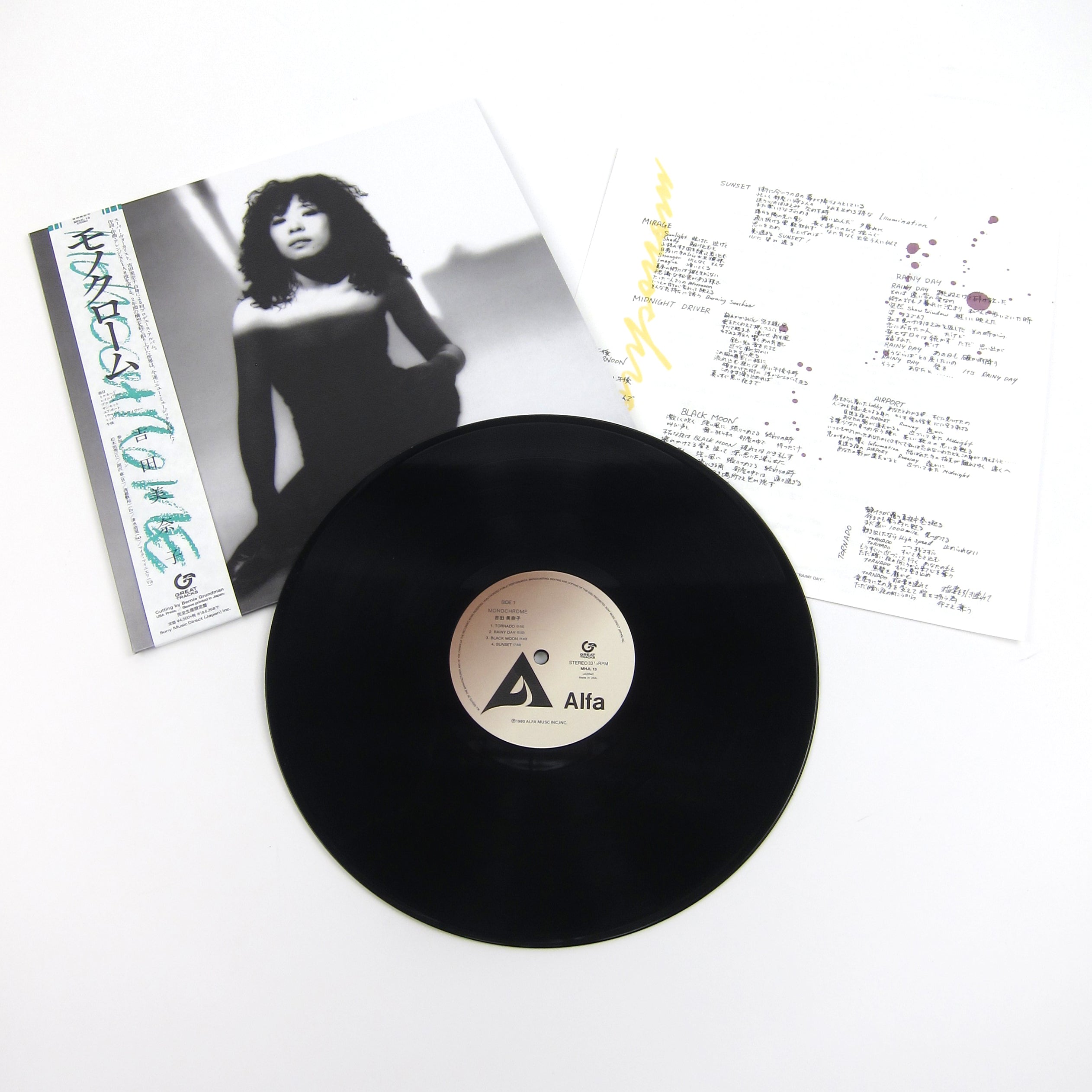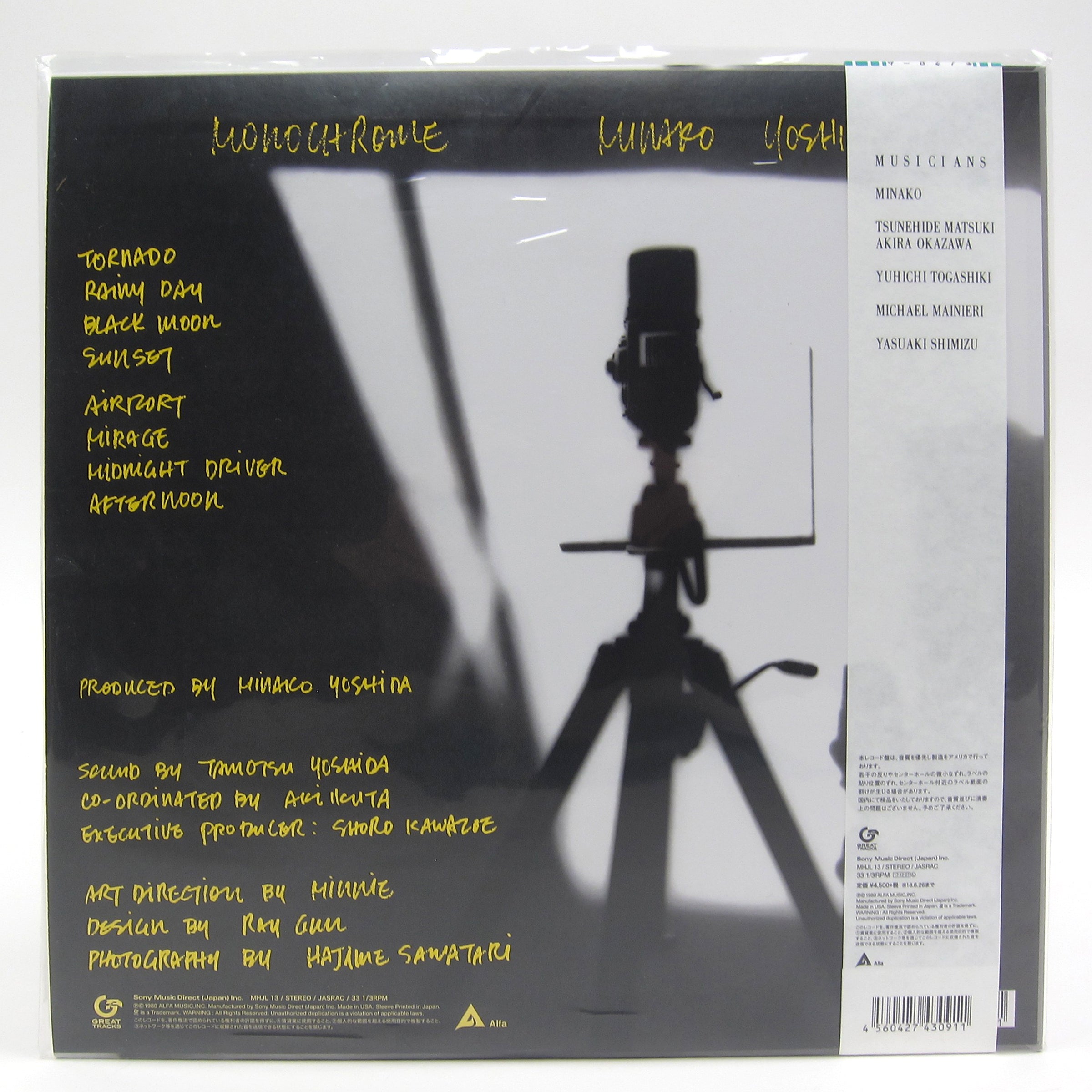 Minako Yoshida provided backing vocals for a slew of Lab favorites, including Haruomi Hosono’s Tropical Dandy, Pecker’s Pecker Power, YMO’s self-titled debut and Tatsuro Yamashita’s Spacy and For You, but was an established songwriter in her own right and had a respectable solo career. Monochrome follows a string of albums spent seeking a bright, “Californian” sound, marking a return to Japan with more pensive, introspective songwriting and softly-lit midday grooves, evidenced clearly and immediately in the album’s highly-framable artwork. Sessions began with Minnie’s voice and piano, slowly adding layers of drums, saxophone (Yasuaki Shimizu!), vibes, guitar and bass until achieving the sweet spot. The result is as enjoyable as any of the classic American soul albums, language barrier notwithstanding; a self-produced masterwork of intimate grooves, spine-tingling vocal harmonies and mature songwriting. “Midnight Driver” and “Black Moon” have dancefloor potential, but “Tornado,” “Rainy Day” and “Airport” are the easy favorites, resembling our favorite classic soul flavors a la Luther Vandross, Teddy Pendergrass, Anita Baker, Minnie Ripperton. Originally released on Alfa, this high-quality analog pressing by Great Tracks is the first vinyl issue since the 1980 original. Housed in old-school style tip-on sleeve with obi strip and Minnie’s hand-penned lyrics and liner notes, recommended.