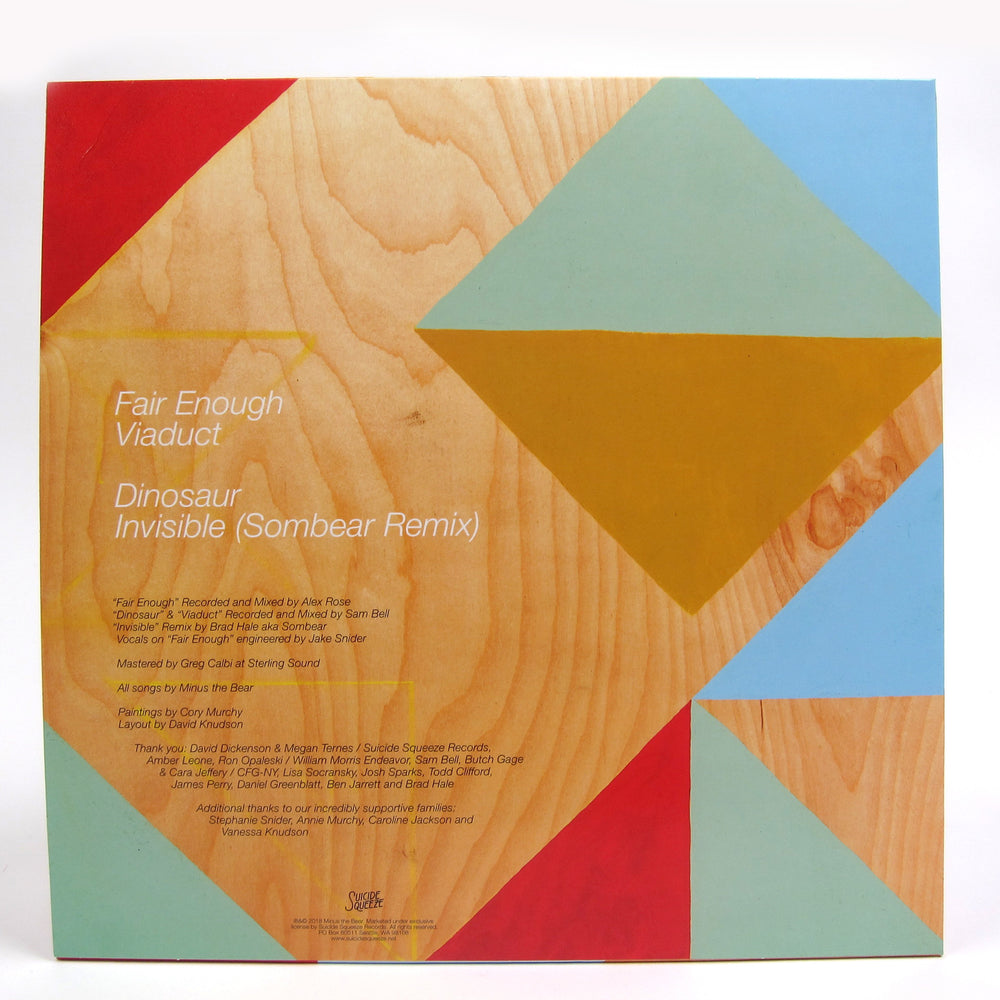 All good things must come to an end. On July 17th, 2018 (after almost two decades), Minus The Bear announced their retirement and bid adieu to their unique brand of diverse, party-friendly indie pop. Fair Enough is the Seattle band's final release, acting as one last hurrah for the quartet that "thrived on the musical awakening in the era of the mp3, the internet, poptimism, and the crosspollinations generated from an expanded consciousness of new music forms." The four track EP is the culmination of MTB's sound, featuring uptempo rhythms, lush synths, and infectious guitar work that initially set them apart. In addition, a Sombear (aka Bradley Hale of Now, Now) remix of "Incredible" is included, nodding to their ongoing dance collaborations. Limited edition coke bottle green colored vinyl pressing, housed in pic sleeve featuring artwork from bassist Cory Murchy.